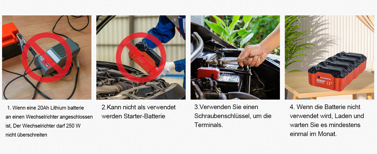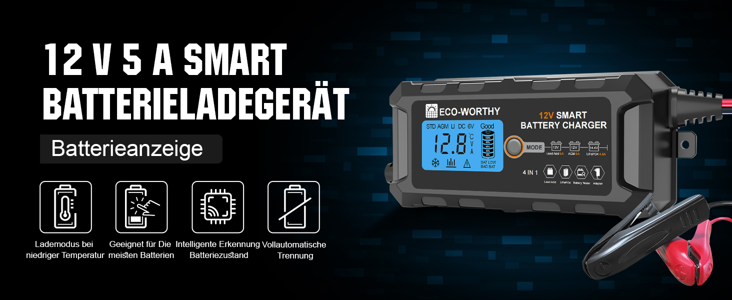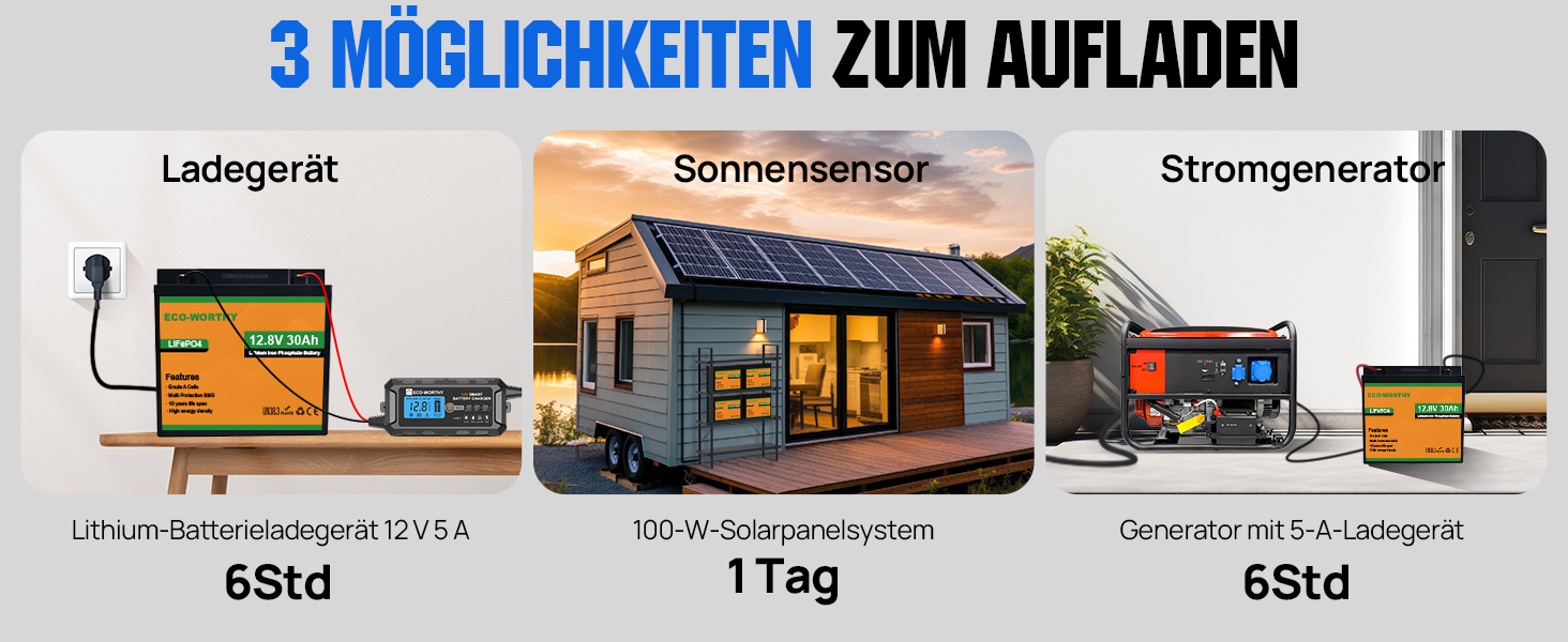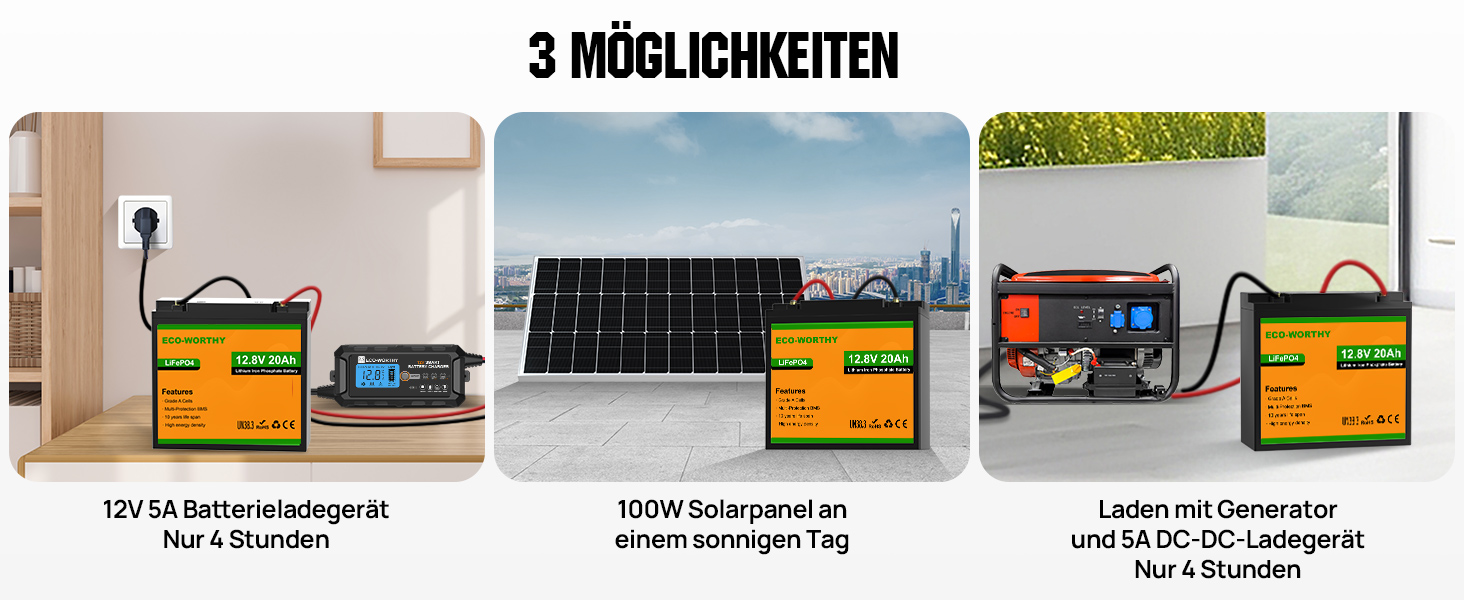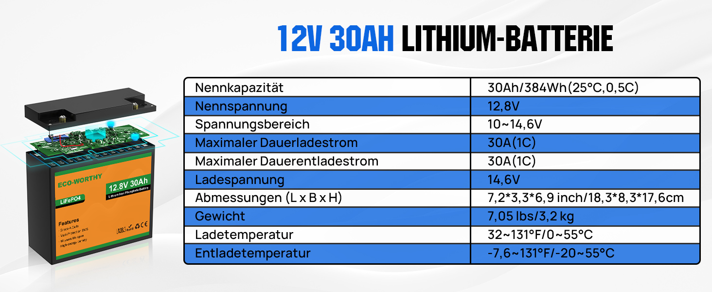 ECO-WORTHY-Batterie verfügt über ein integriertes BMS (Batterie managemen tsystem), geringe Selbstentladung, kann Überladung, Tiefentladung, Überstrom, Überlastung, Kurzschluss verhindern.