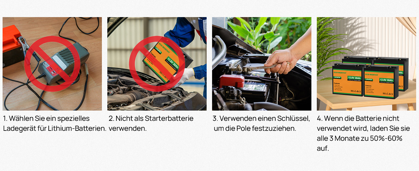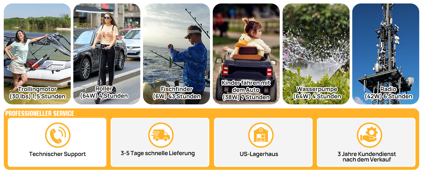 Die LiFePo4-Lithiumbatterie ist sicher, effizient und tragbar, geeignet für Wohnmobile, Wohnwagen,Elektro-Boote, Golfwagen,Kinderfahrzeuge,Werkzeuganhänger, Sonnenkollektoren, oder kann als Notstromversorgung verwendet werden.