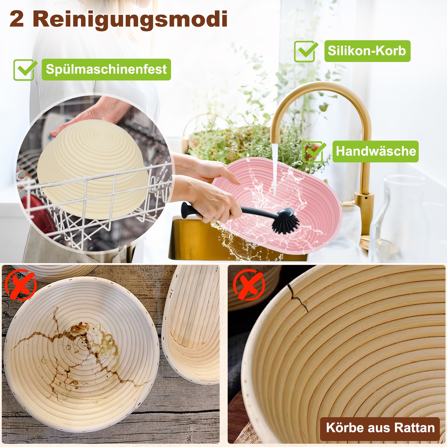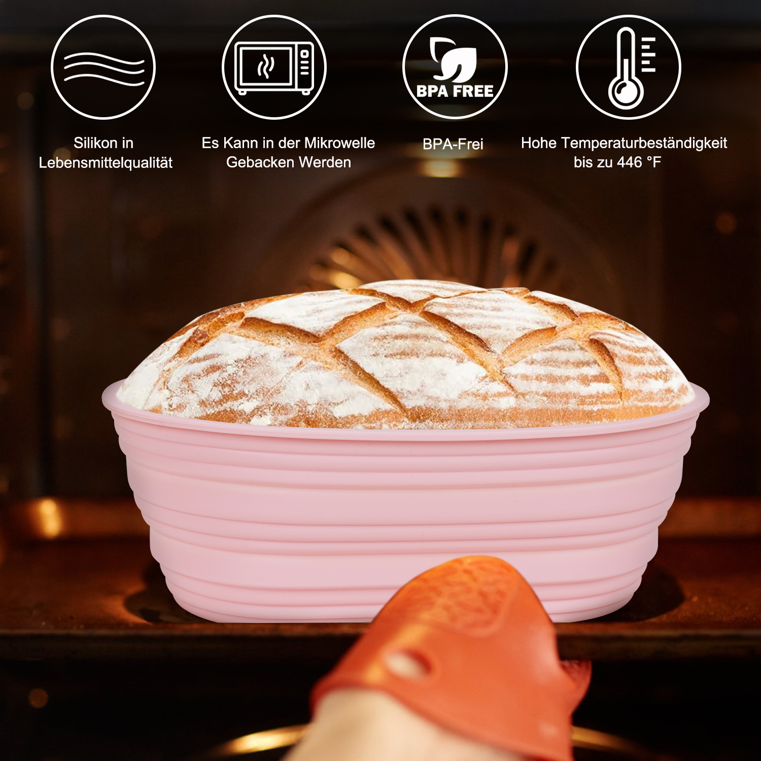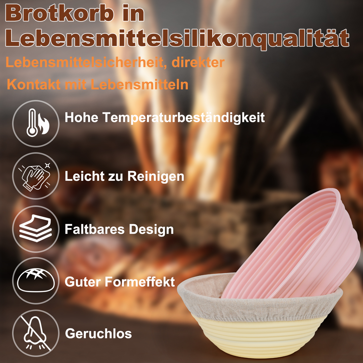 【Lebensmittelechte Silikon-Brotkörbe】Unsere Brotkörbe sind aus BPA-freiem lebensmittelechtem Silikon, frei von Farbstoffen und Chemikalien, keine Risse und Kratzer, und werden nie schimmlig. Das antihaftbeschichtete Material ermöglicht es Ihnen, den Teig direkt im Korb zu mischen und zu säuern. Außerdem lässt sich der Teig dank der Flexibilität des Silikons im Vergleich zu herkömmlichen Holzkörben leichter herausnehmen.