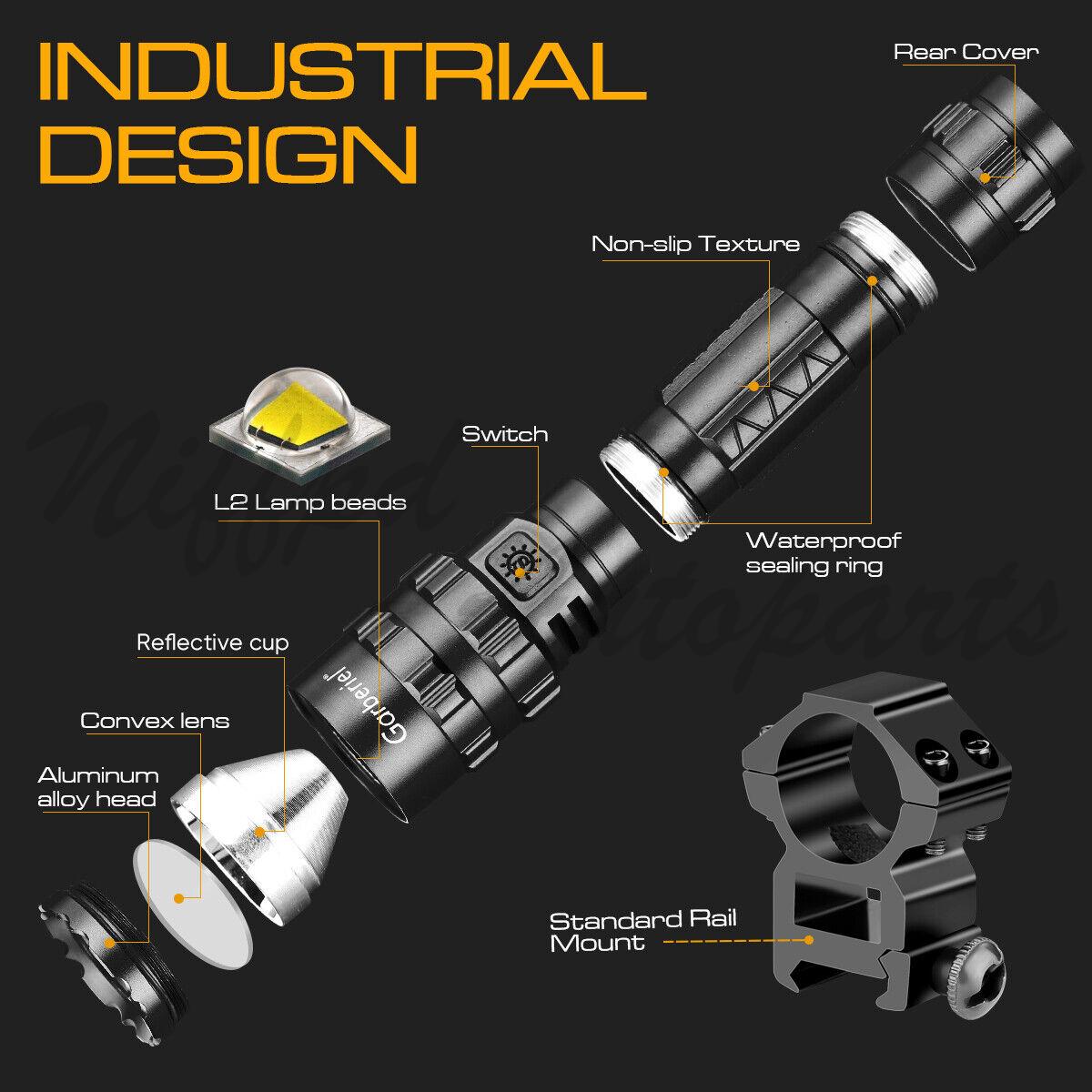 1/2Pack Tactical Gun Flashlight with Picatinny Rail Mount for Hunting Shooting