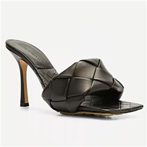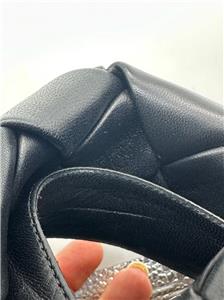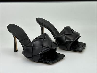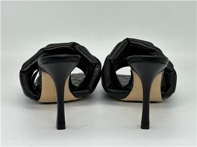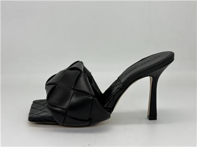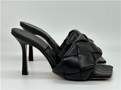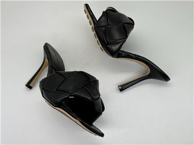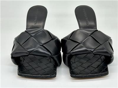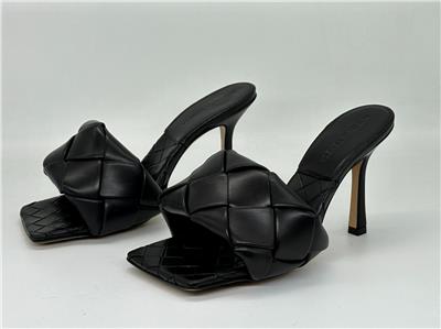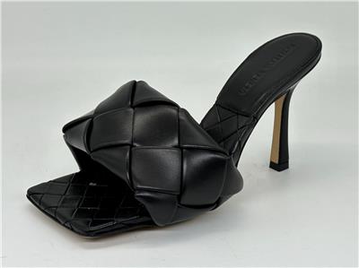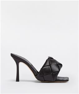 Thermo-sealed quilting mimics the label's intrecciato weave on this padded nappa-leather sandal designed with an exaggerated square toe that extends beyond the foot. A rubber-injected leather sole enhances comfort and stability.