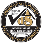 Der Kuckuck ruft zu jeder halben Stunde einmal und zur vollen Stunde die Anzahl der Stunden. Diese Kuckucksuhr hat einen exklusiven naturgetreuen handbemalten Holzkuckuck. Mit Echtheitszertifikat vom Verein die Schwarzwalduhr (VdS). Die Kuckucksuhr hat ein extrem langlebiges Rechenschlagwerk. Es erlaubt die Zeiger nach links und nach rechts zu drehen, ohne die Uhr zu beschädigen. Das 1 Tag Werk muss jeden Tag einmal aufgezogen werden, das heisst, man zieht an den Ketten bis die Gewichte wieder ganz oben sind. Die Größe bezieht sich nur auf die Uhr, ohne Gewichte und Pendel.