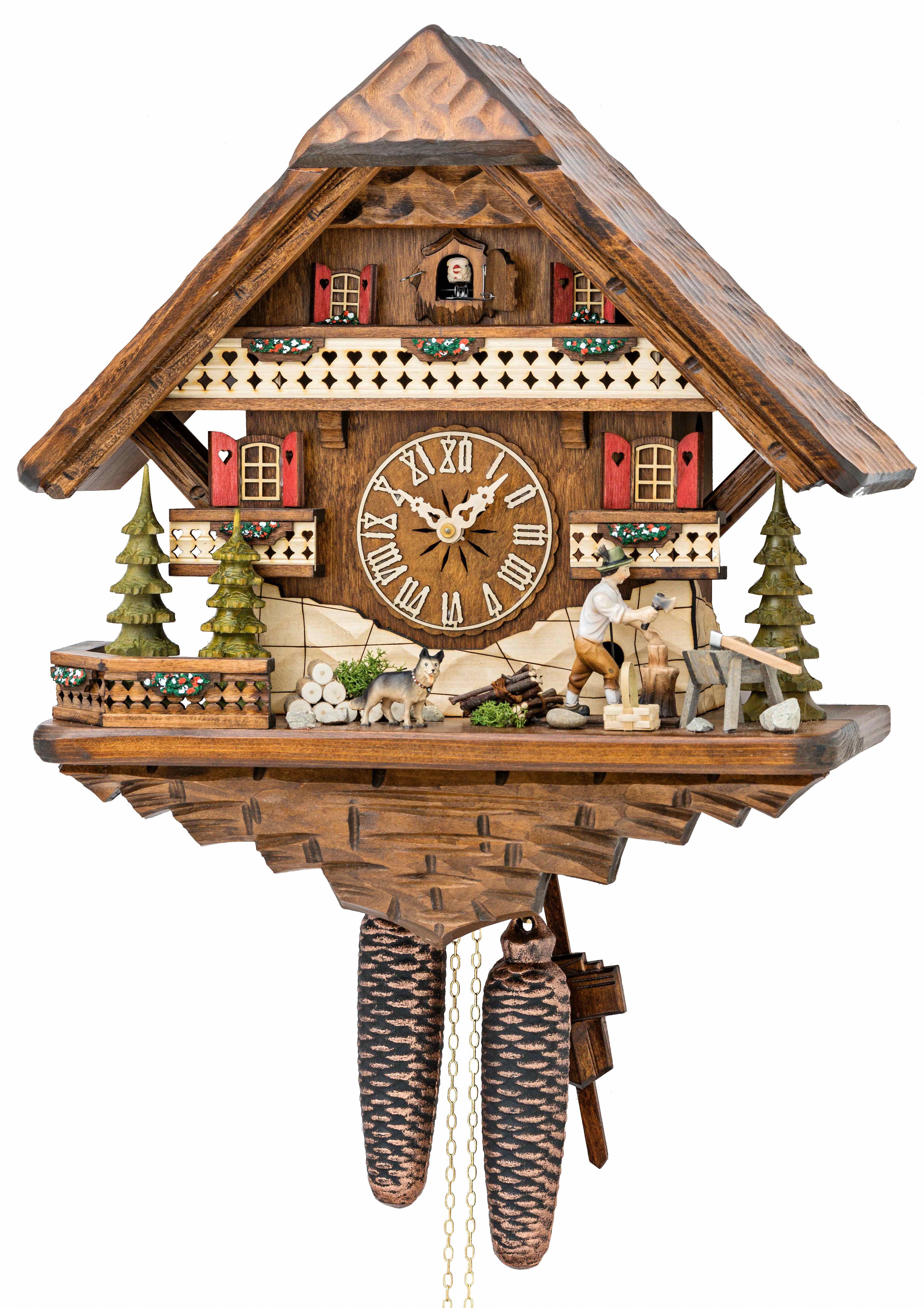Cuckoo Clock Black Forest house with moving wood chopper NEW