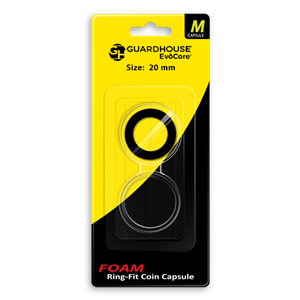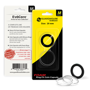 EvoCore ring-fit coin capsules accommodate coin sizes from 13 to 41 mm, including most foreign, early U.S., and odd-sized coins.