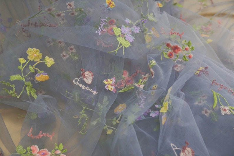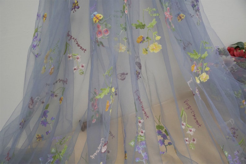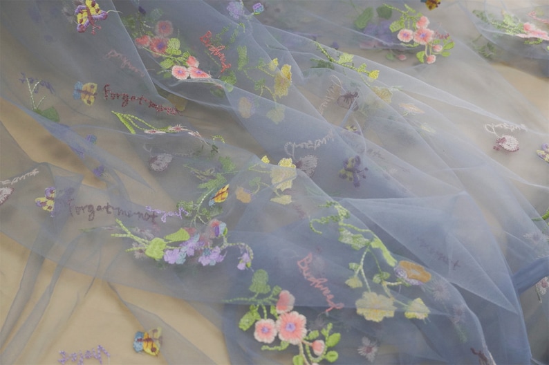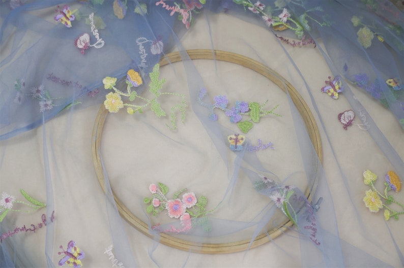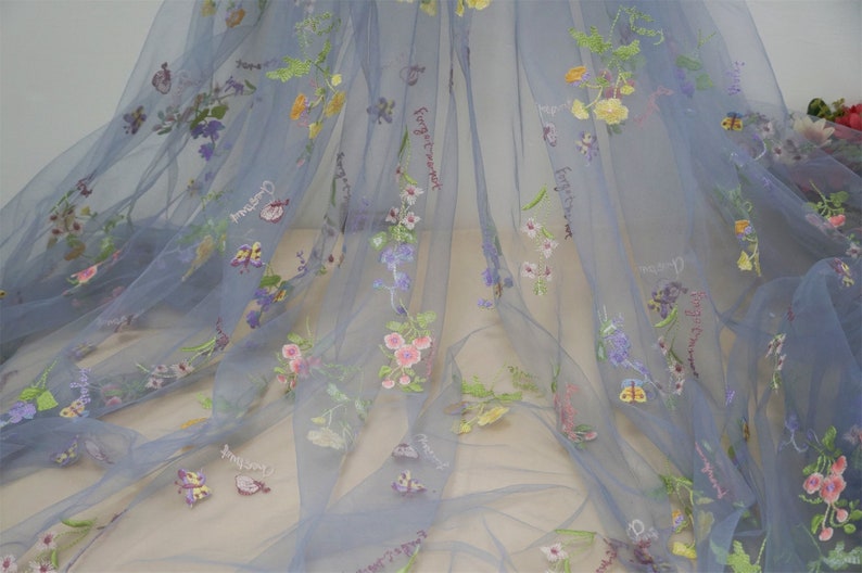 Soft lace tulle, Colorful flowers with butterflies, lavender and yellow flowers overlay fabric for Evening Dress Lace Fabric, great for garden party dress, Flower Girl dress, garden party dress