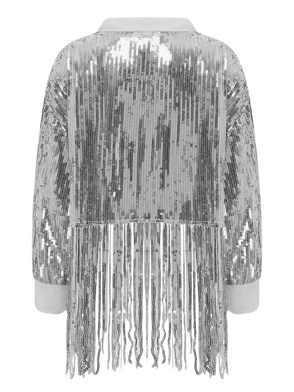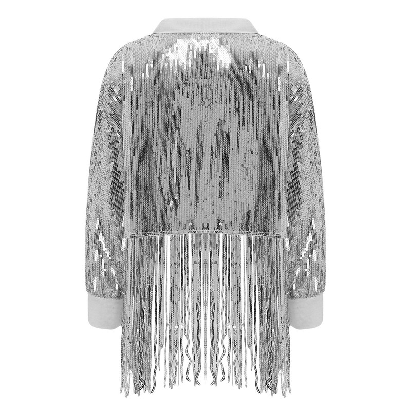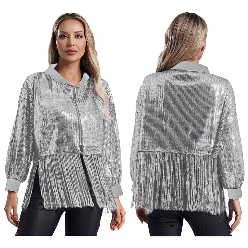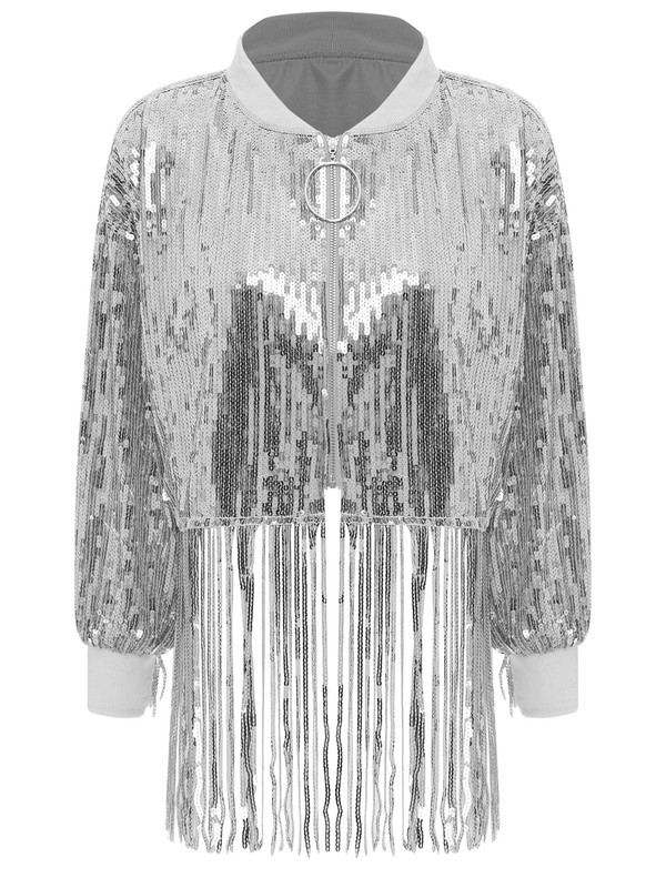 Entworfen mit langen Ärmeln, Frontreißverschluss mit großem O-Ring, geripptem Besatz, Paillettenquaste, glattem Futter und kurzem Länge, funkelnd und stilvoll.
