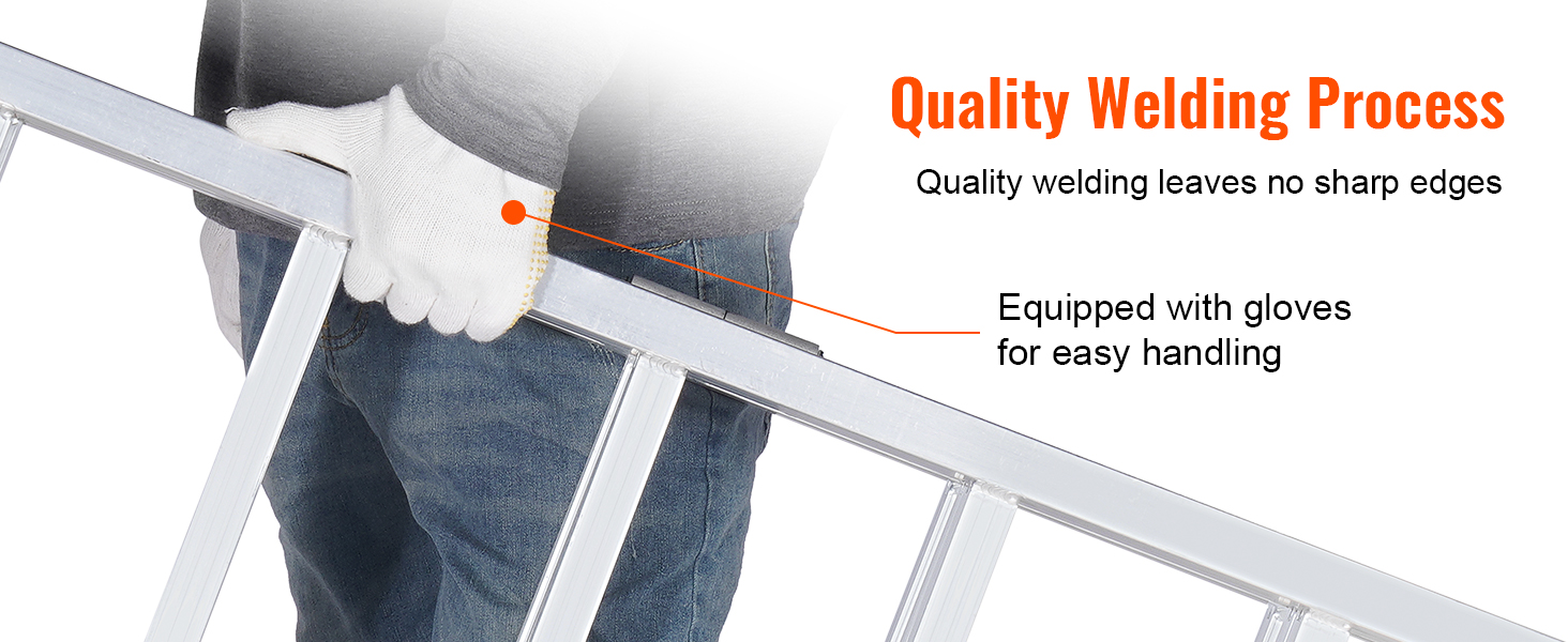 - Easy to Use: Tightly welded with welding rods, the trailer ramp is smooth and won't cut your hands. Plus, our product comes with thick gloves for double safety, making it easier than ever to load and unload your vehicles without any worry. The ramp will make your transportation experience a breeze!