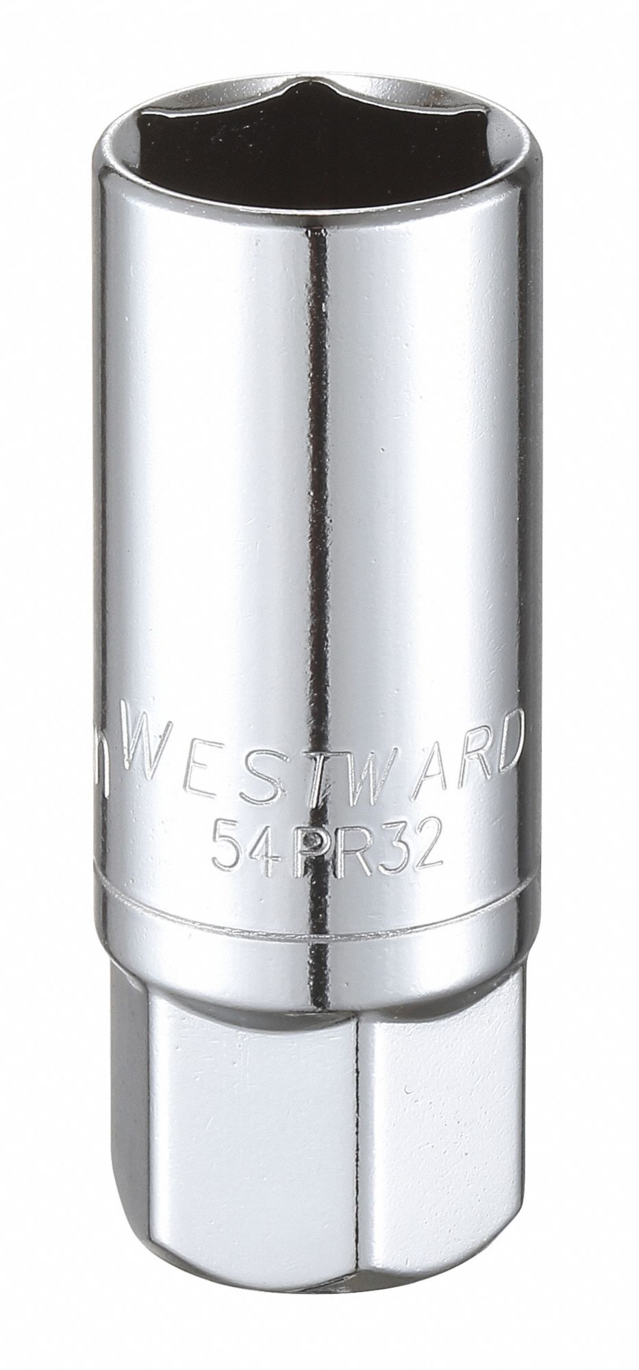 Spark Plug Socket, Hand, Chrome, 6-Point, Socket Size 21 mm, Bolt Clearance 23/64 in, Drive Size 1/2 in, Impact Rated No, Alloy Steel, Metric, Non-Magnetic No, Non-Sparking No, Socket Depth Deep, ASME B107.110-2012, No
