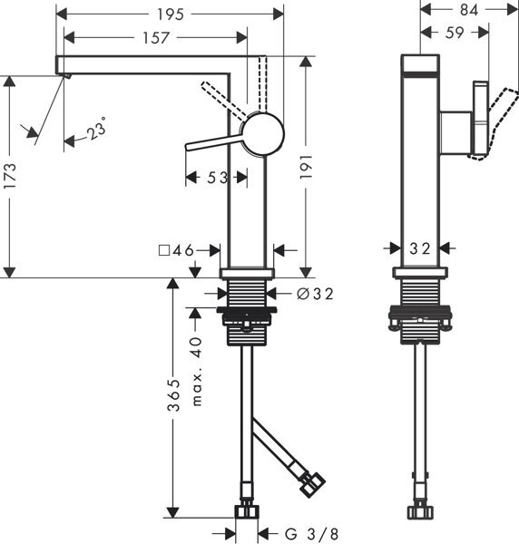 - Poignée : poignée à levier droite