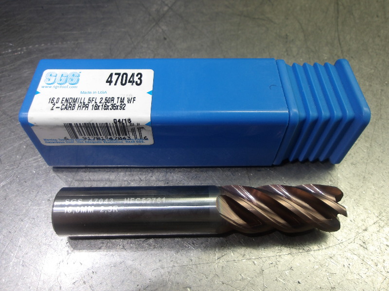 SGS 16mm 5 Flute Carbide CR Endmill 16mm Shank 2.5mm R 47043 (LOC433A)