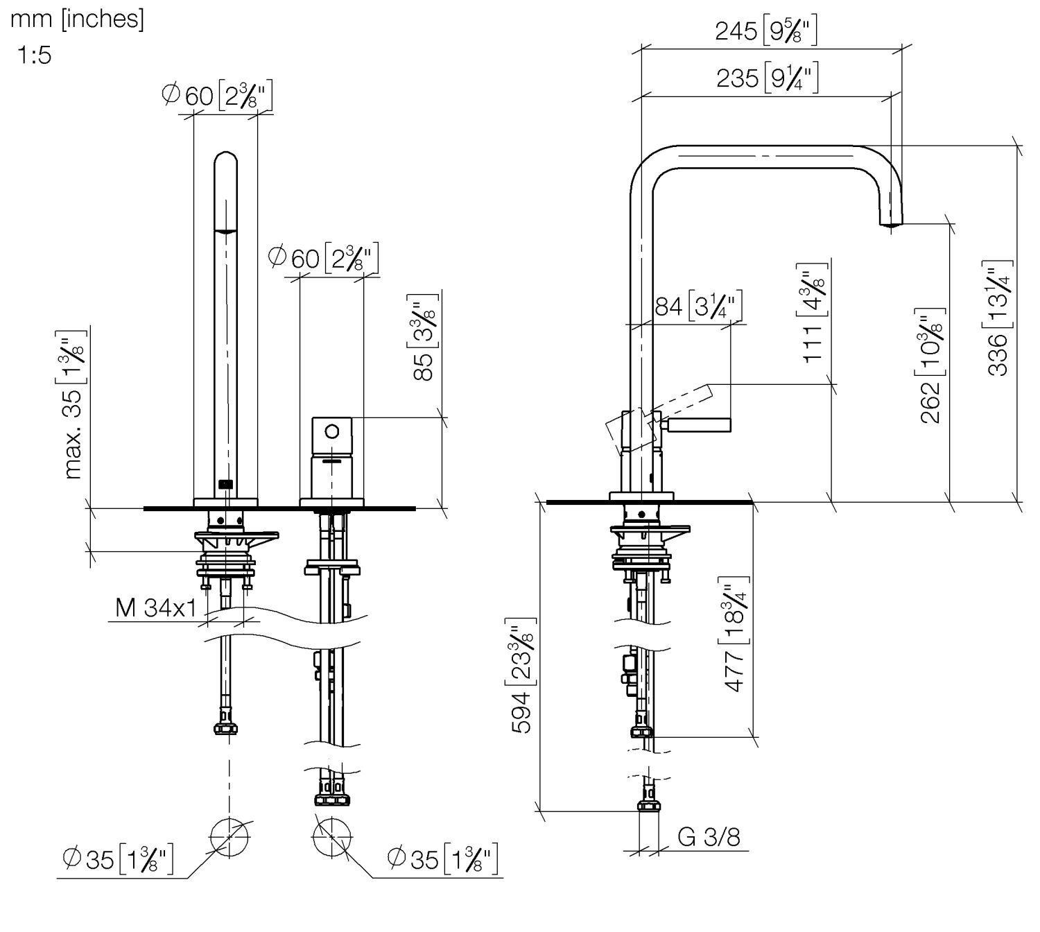 Batterie deux trous Dornbracht META SQUARE avec rosaces individuelles, charge 235 mm, 32815861-33, couleur : noir mat