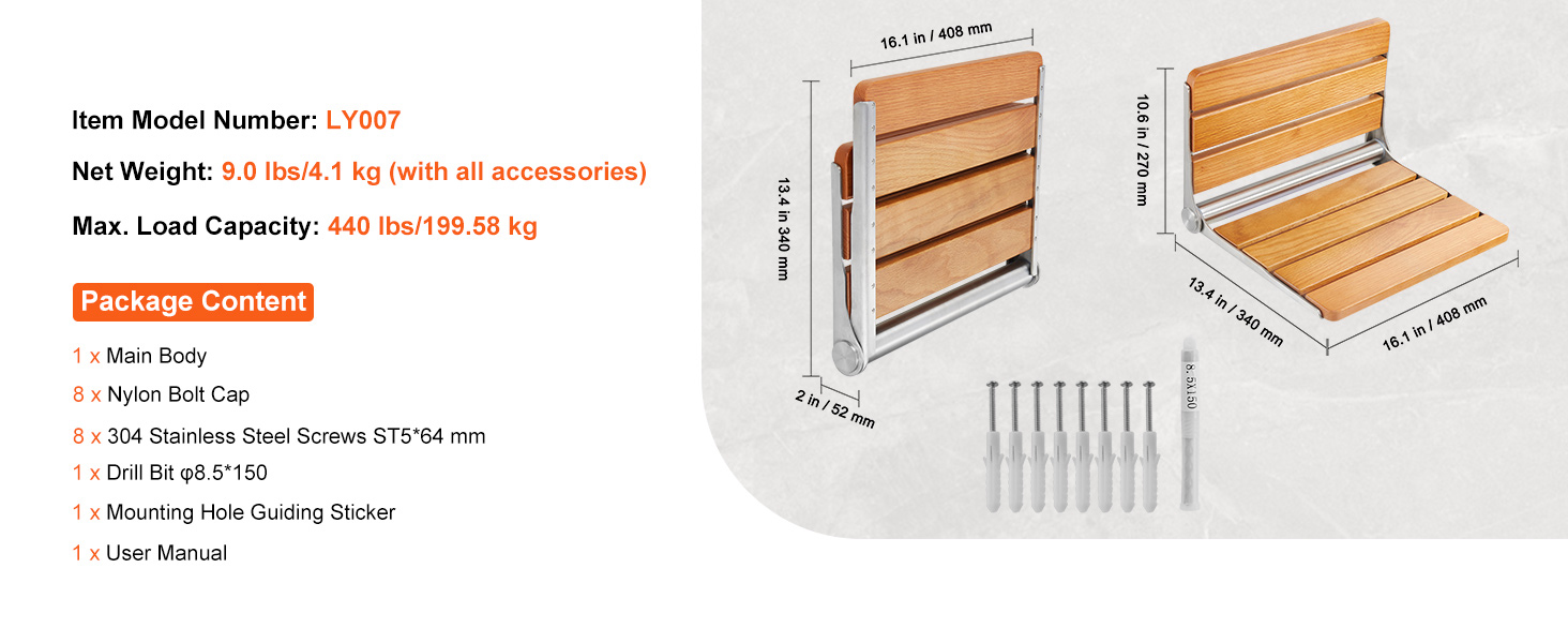 With its elegant and stylish design, this wall mount shower seat seamlessly fits into various décor styles and environments. Perfect for bathrooms, bedrooms, hallways, entryways, and boats, it offers unmatched convenience and enhances the functionality of any space.