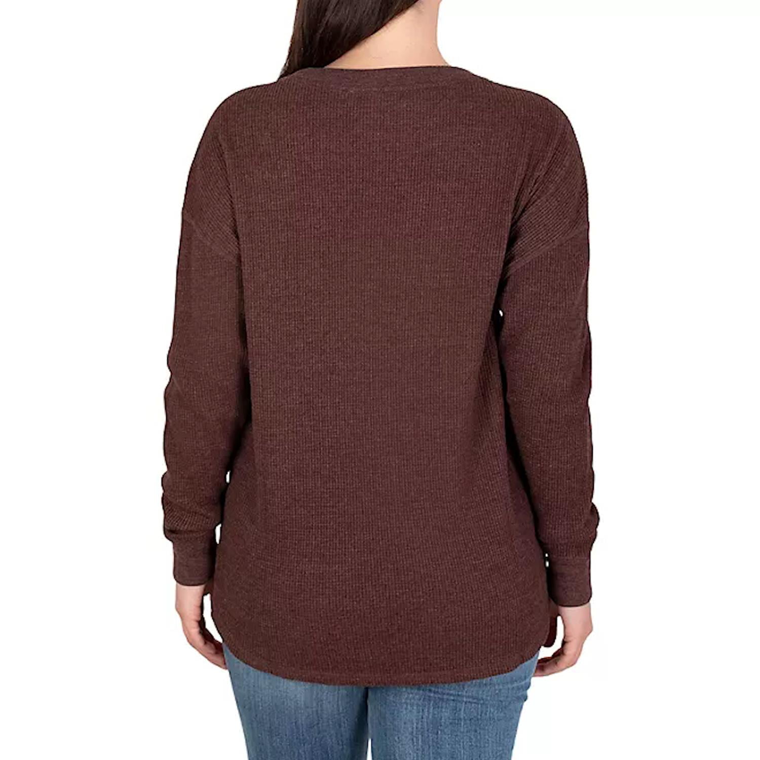 Seven7 Women Waffle Knit Stretch Cotton Blend Crewneck High-Low Hem Pullover Top.