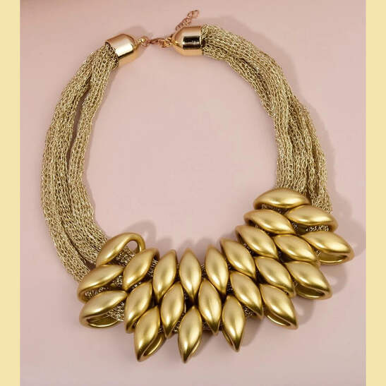 Transform your style with this stunning choker necklace featuring large beads and a golden synthetic material. Be the center of attention in this beaded necklace from Rockthosecurves. Dispatch within 1-2 working days.