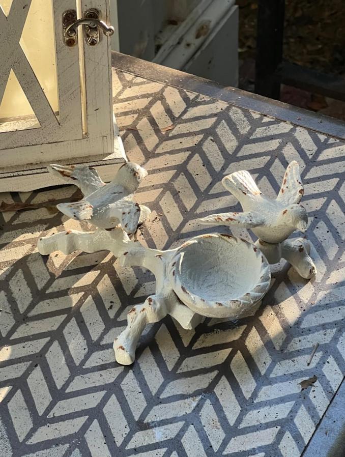 Well-detailed crafted iron bird set, suitable for indoors and outside. The perfect accent to shelves, mantel, living room,