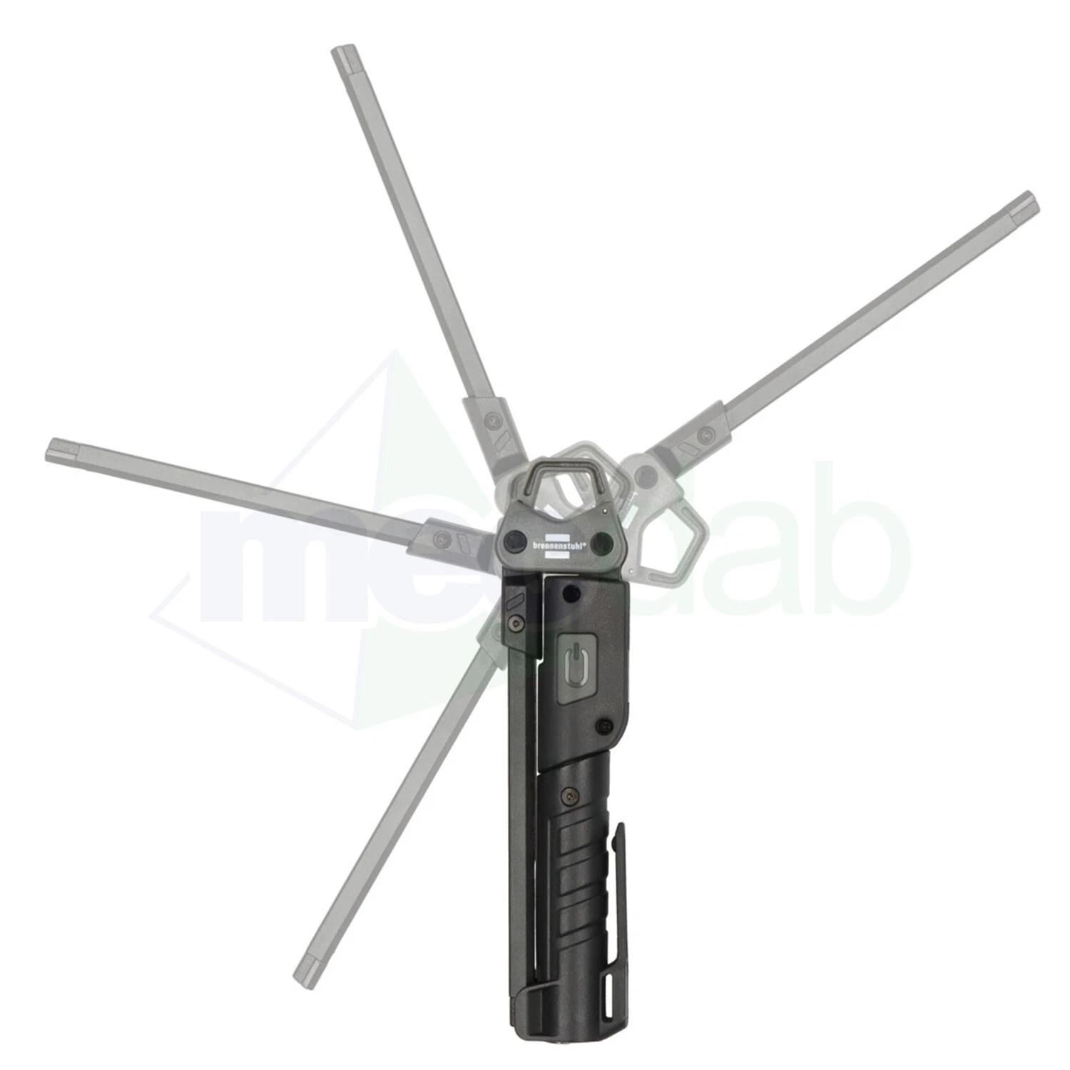 La testa della lampada a LED con 3 sorgenti luminose commutabili individualmente (luce principale: 3W/ 400lm, spot: 1W/100lm e sorgente luminosa sul retro: 1,5W/200lm) è pieghevole.
