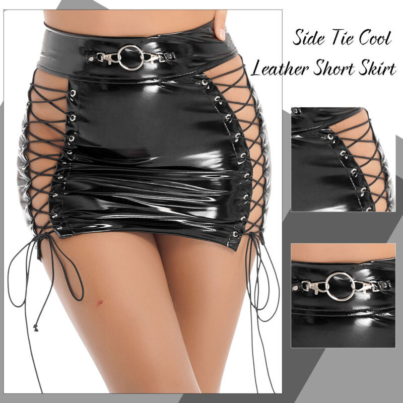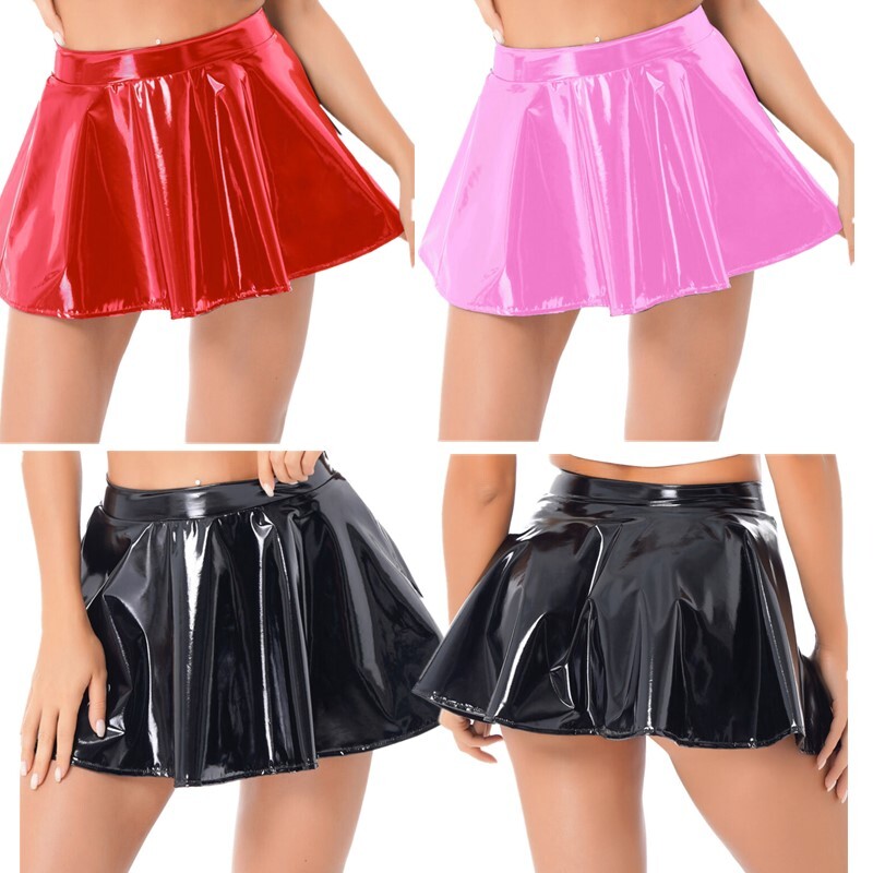 Stylish design patent leather skirt can better highlight your body with leather crop top, camisole, tank top or tube top.