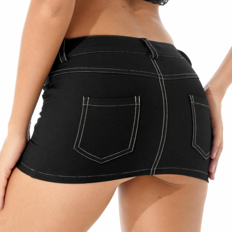 The mini skirt is designed with 4 adjustable garter belts and metal clips for holding the stockings in place.