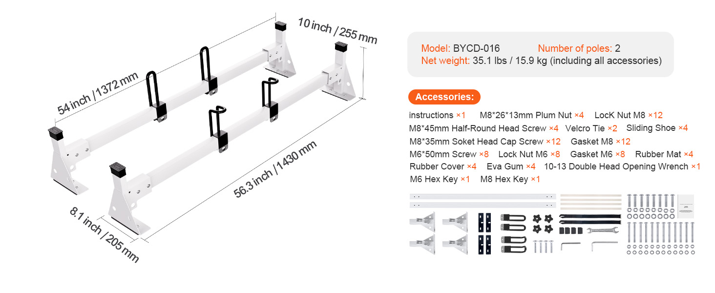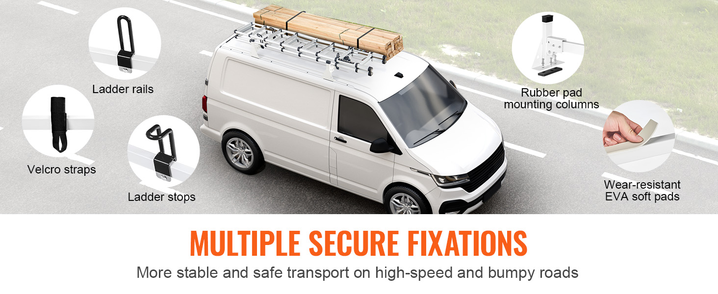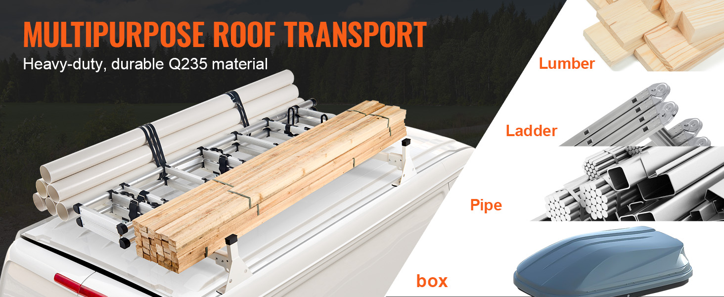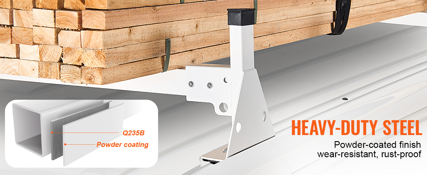 The van rack is made from Q235 material, heavy-duty and sturdy, with strong load-bearing capacity to ensure worry-free transportation of heavy goods. Multiple securing options make transporting ladders, lumber, and other items more efficient and safe.