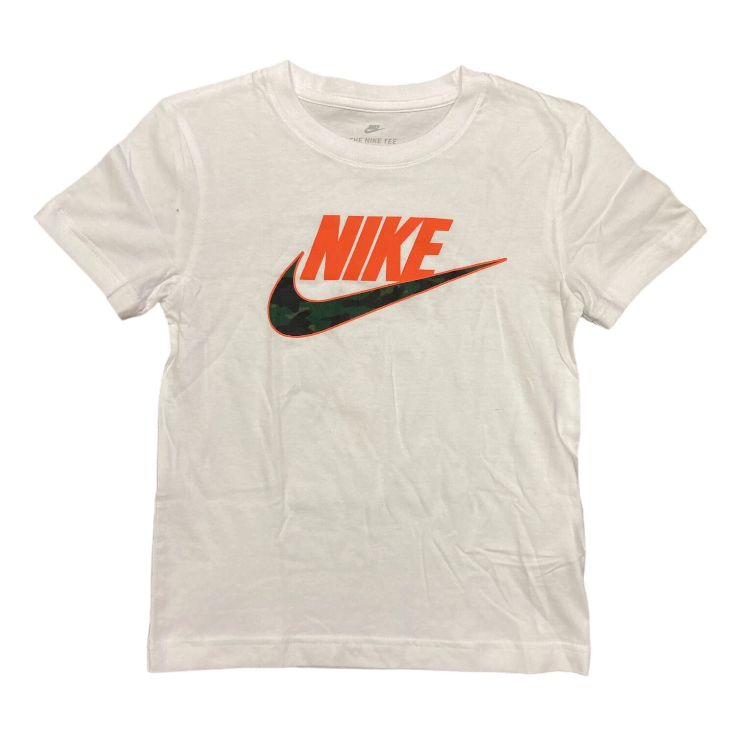Nike Tee Shirt Boy's White Short Sleeve Crewneck Graphic Print Pullover Cotton.