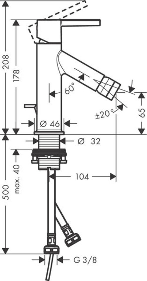 Hansgrohe AXOR Starck Mélangeur de bidet à levier unique avec poignée à levier et vidange de tige de traction, 10214000, couleur : chrome