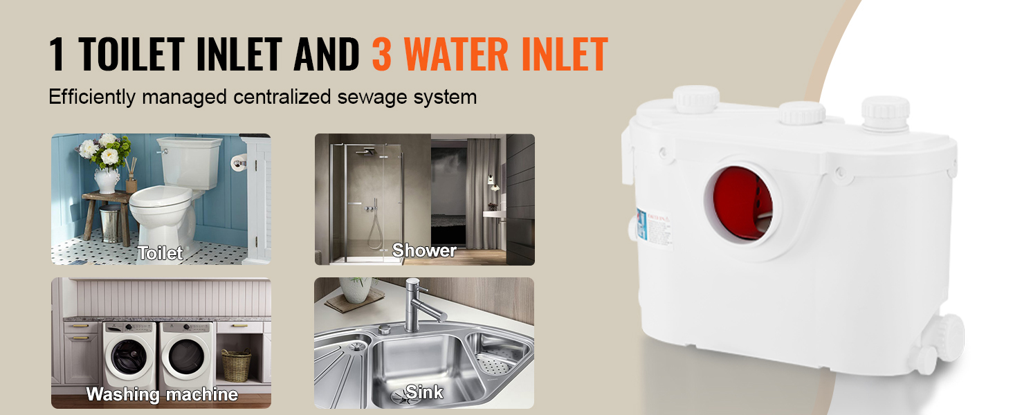 This efficient macerating toilet system handles multiple wastewater sources, providing a complete shower drainage solution with one pump. If you do not want to use all the inlets, simply use the included covers to close the remaining inlets.