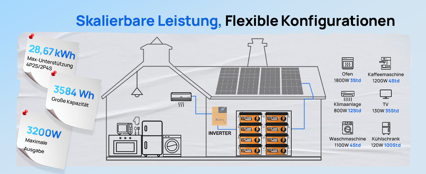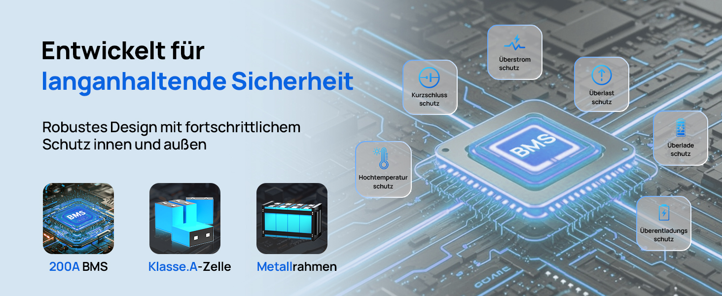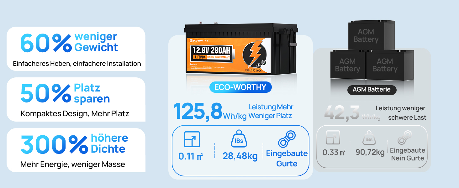 ECO-WORTHY-Batterie verfügt über ein integriertes BMS (Batterie management system), geringe Selbstentladung, kann Überladung, Tiefentladung, Überstrom, Überlastung, Kurzschluss verhindern.