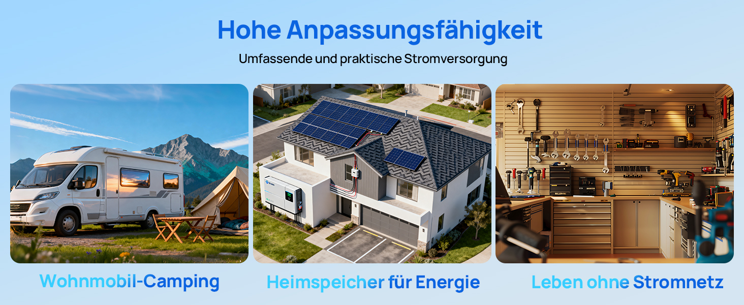 Die LiFePo4-Lithiumbatterie ist sicher, effizient und tragbar, geeignet für Camping, Wohnmobile, Wohnwagen, Elektro-Boote, Golfwagen, Werkzeuganhänger, Sonnenkollektoren, Kinderfahrzeuge oder kann als Notstromversorgung verwendet werden.