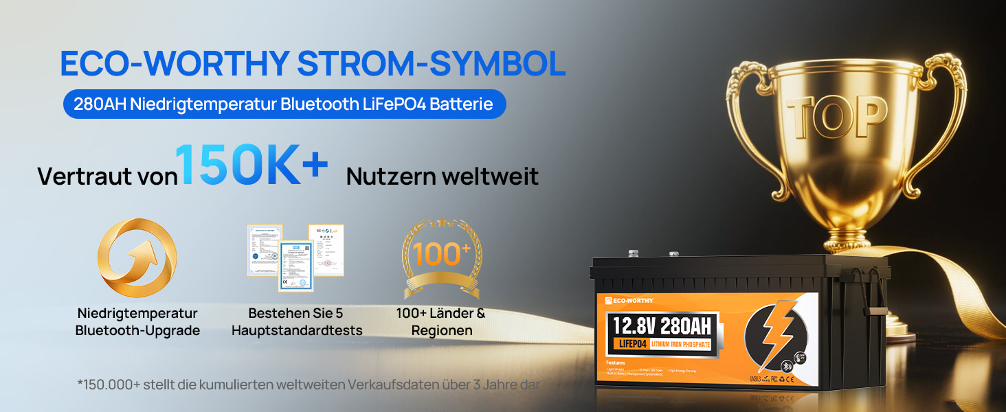 ECO-WORTHY Lithium-Eisenphosphat-Batterie Unterstützt die Bluetooth-Verbindung, um den Batteriezustand in Echtzeit zu überwachen