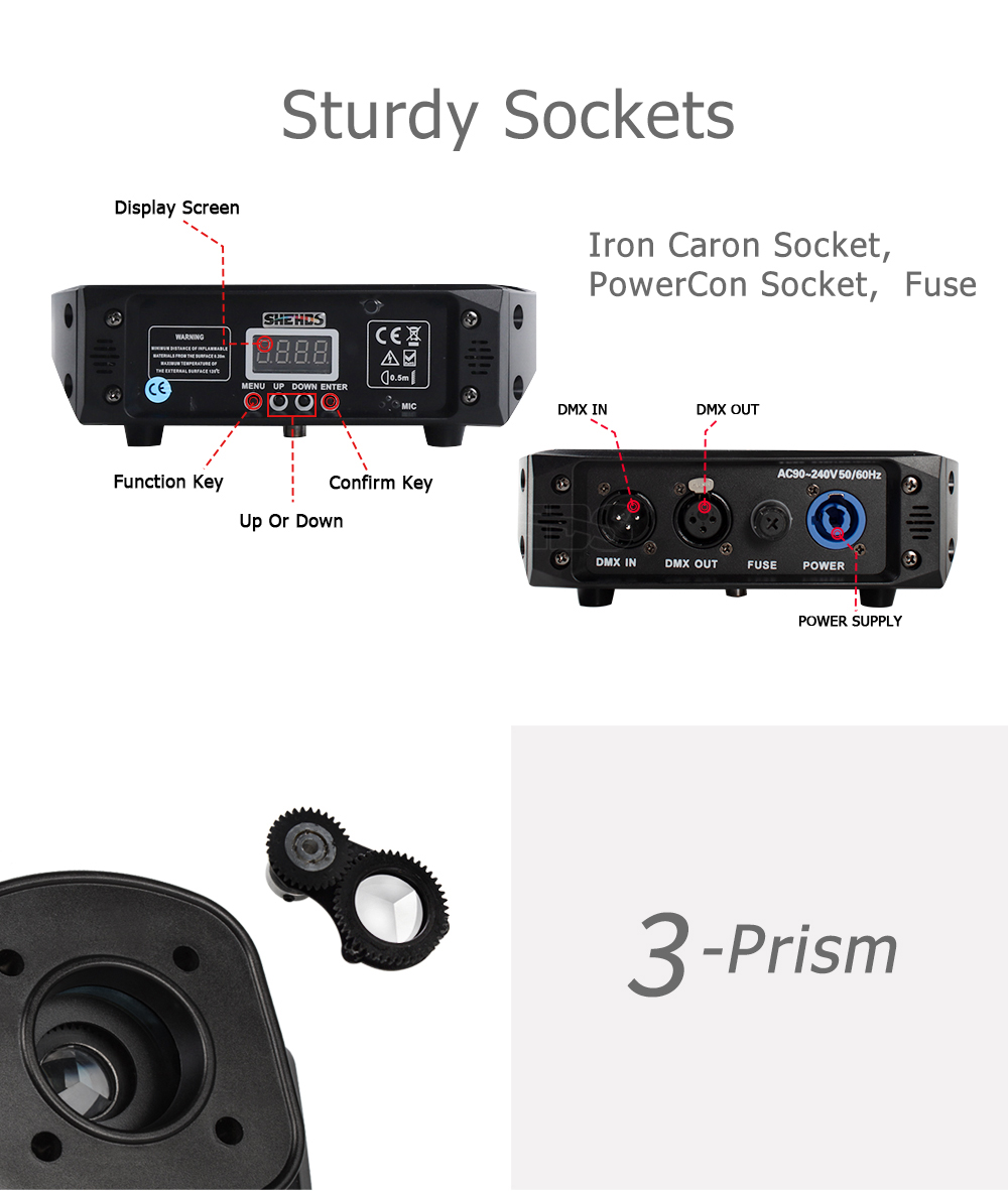 Gobo wheel: 8 gobos + shaking effect + gobo infinite rotation