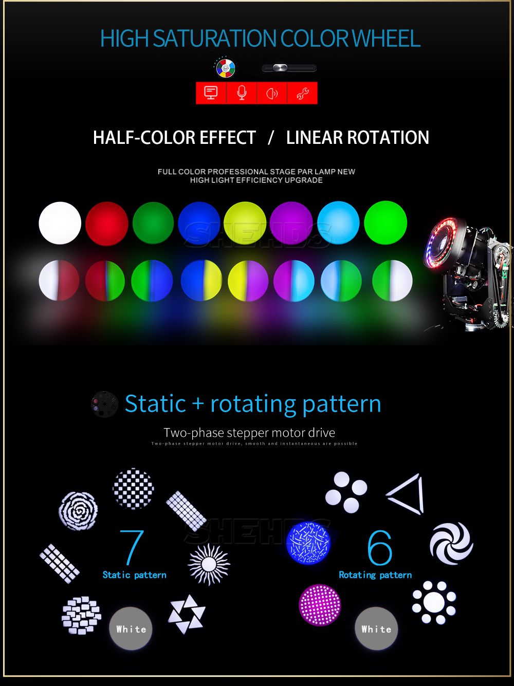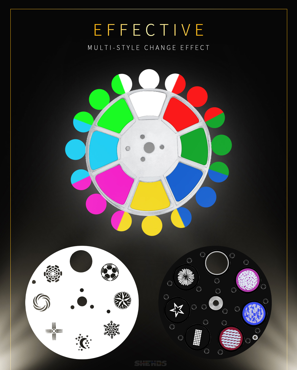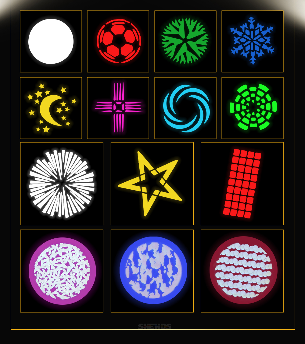 Gobo disk: 2 kinds of gobo disk (static fixed gobo disk, dynamic rotating gobo disk)