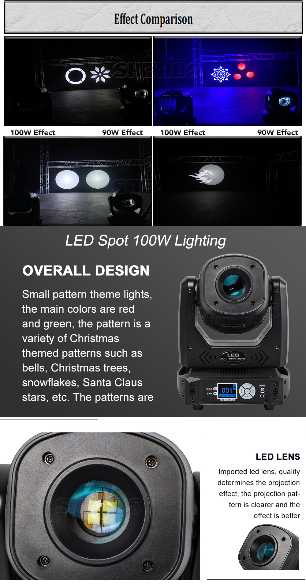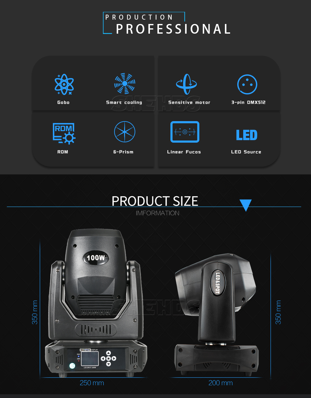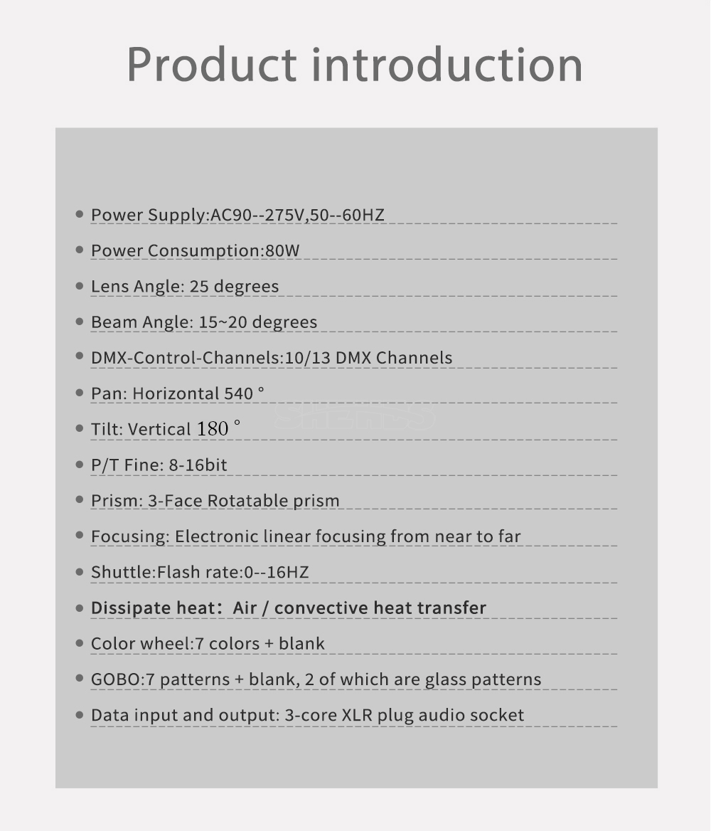 Gobo disk: 2 kinds of gobo disk (static fixed gobo disk, dynamic rotating gobo disk)