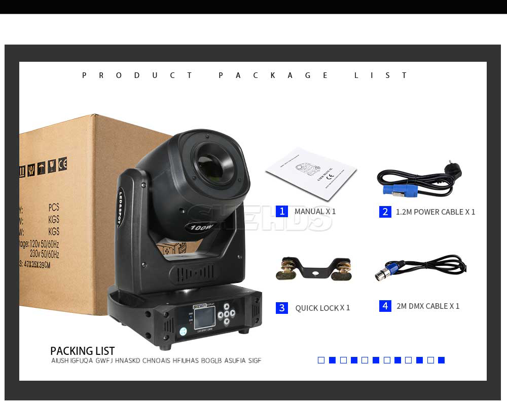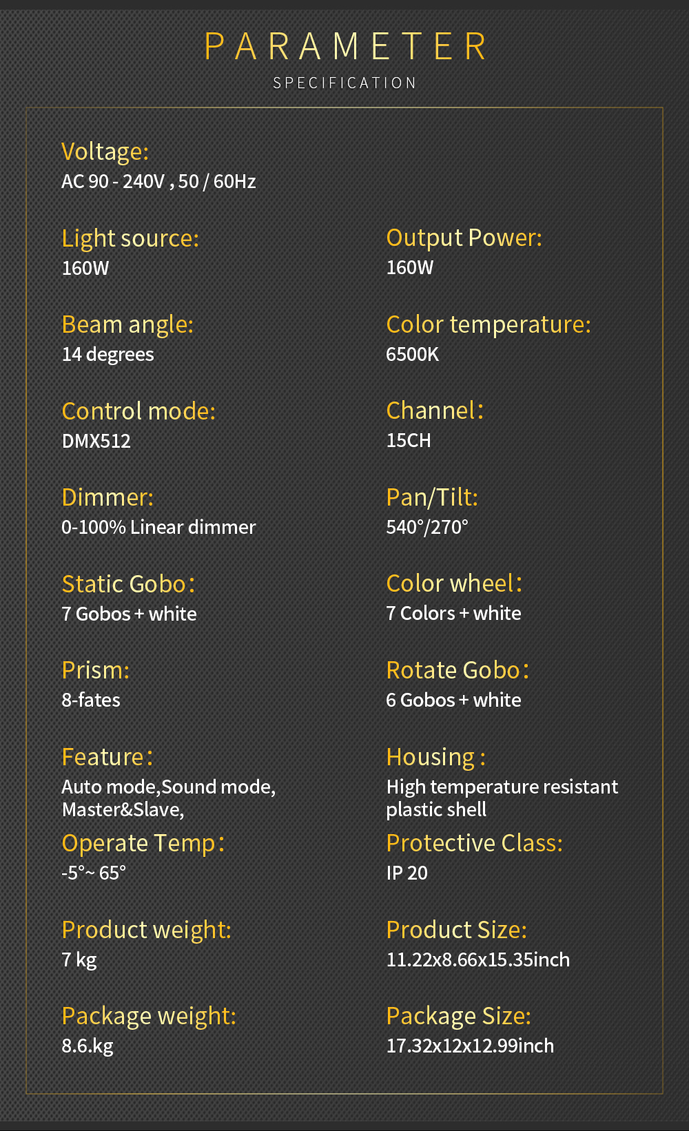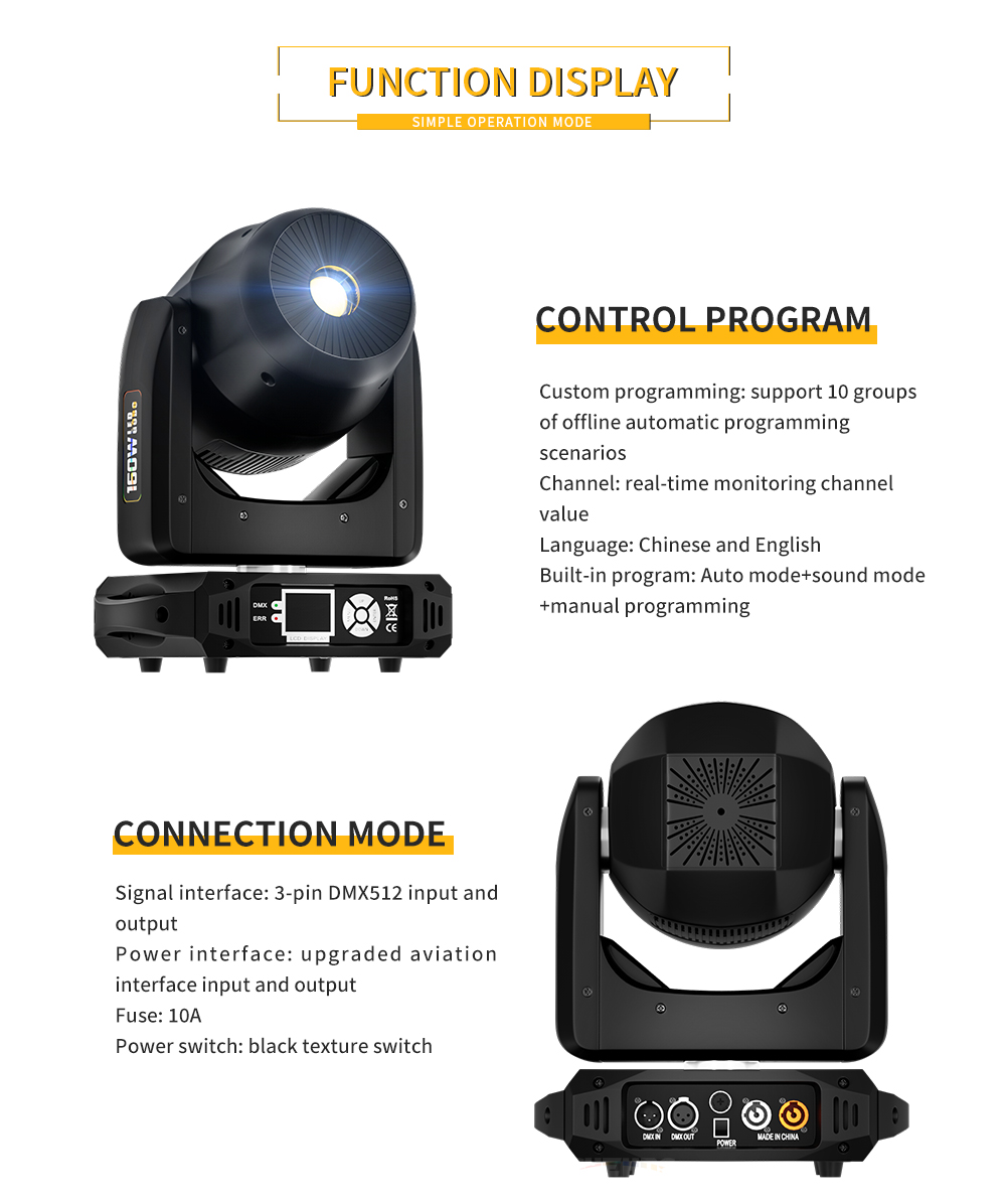 Control protocol: DMX512, master-slave, self-propelled, voice control