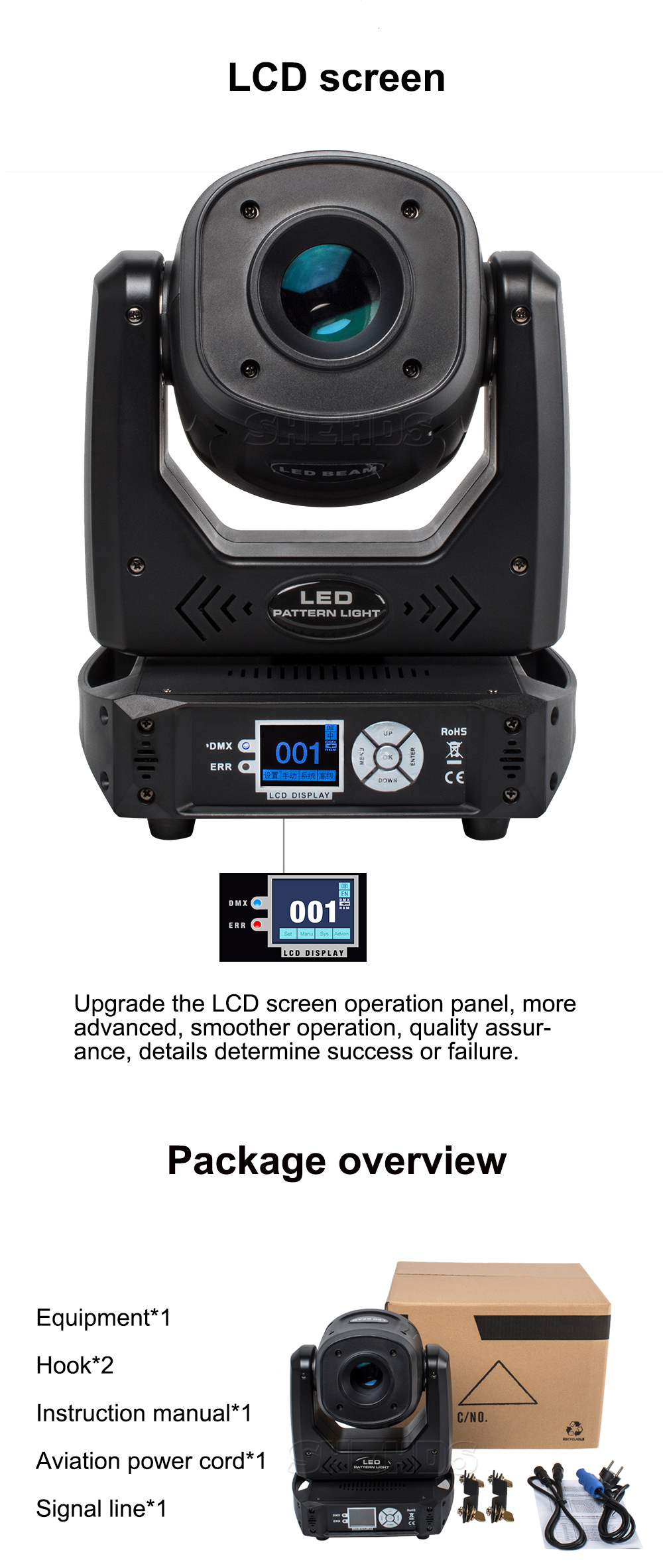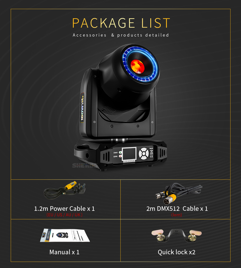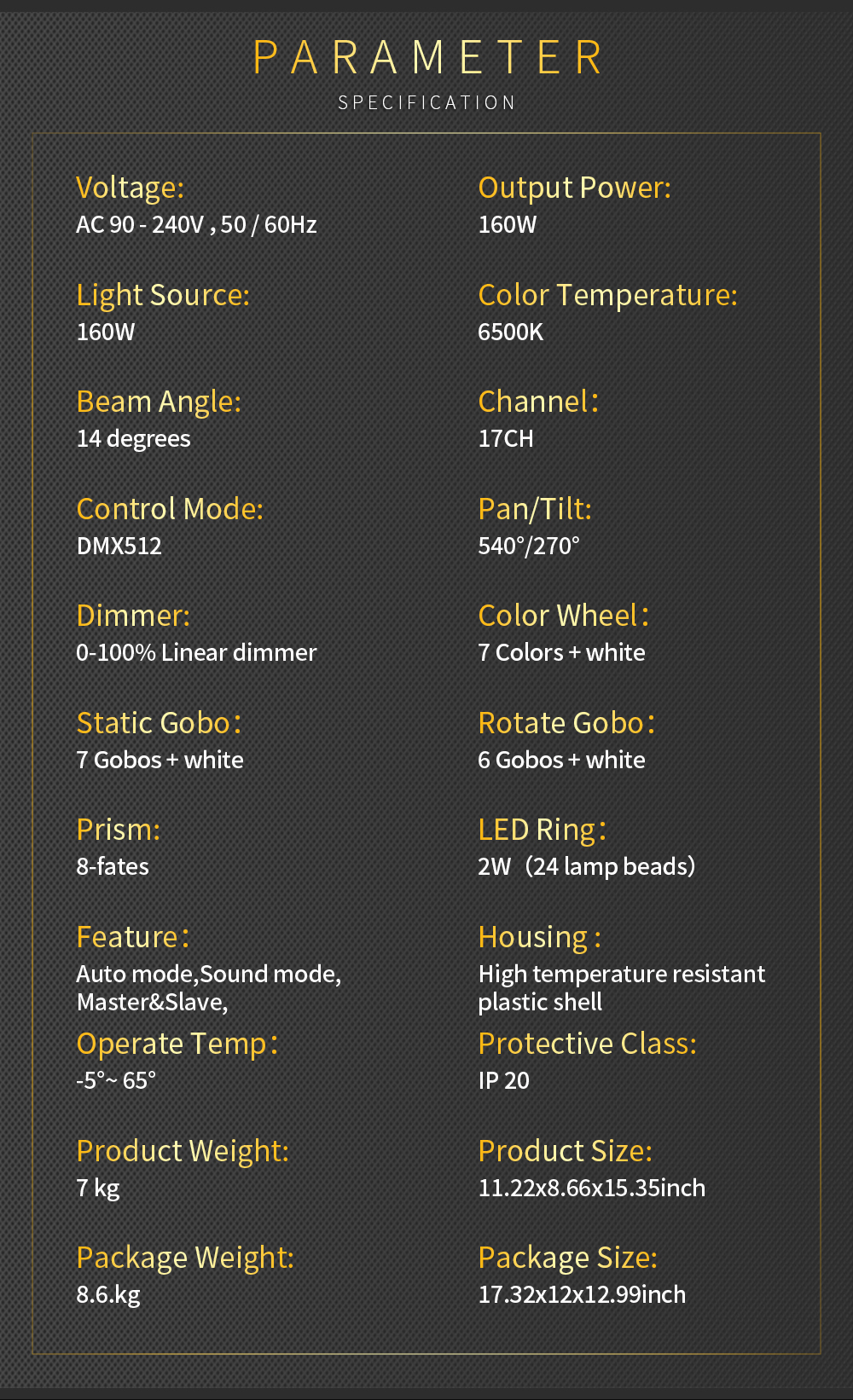 Control protocol: DMX512, master-slave, self-propelled, voice control