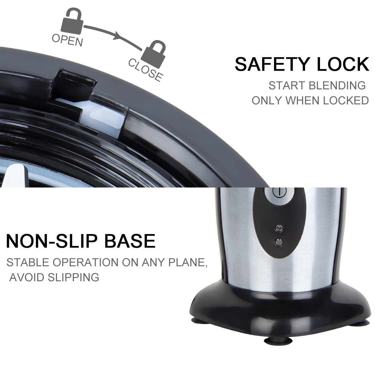 Anti-Rutsch-Saugboden-Design - Am Boden des Uten Multi-Funciotnal Blender befinden sich 4 feste Saugnäpfe. Dies könnte Ihnen helfen, viele Küchenunfälle wie Ausrutschen zu vermeiden.
