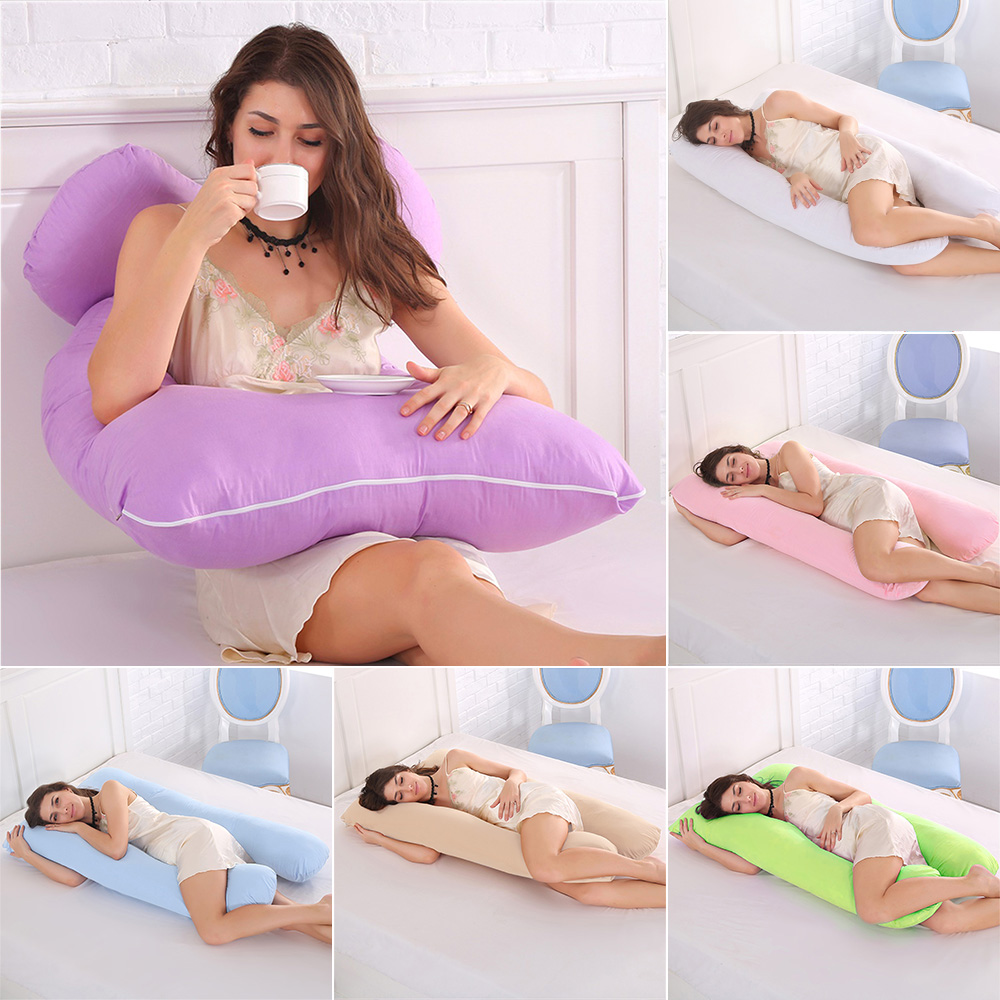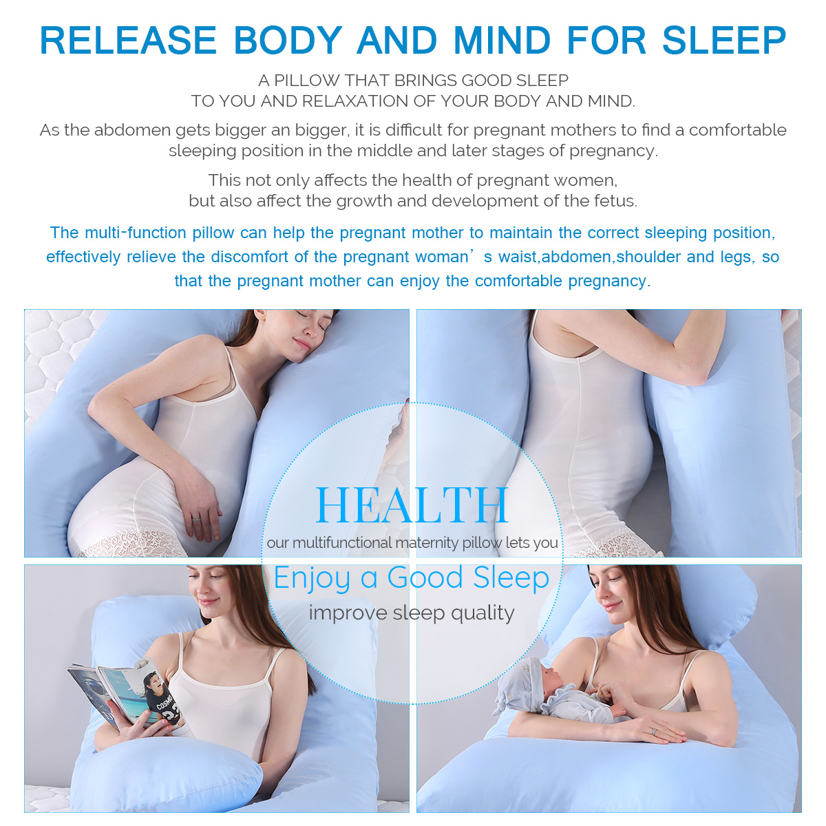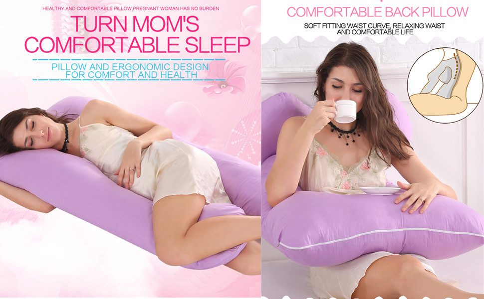 【Pain Relief for Better Sleep】Our pregnancy pillow provides expecting mothers with effective support on head, neck, shoulder, back, belly, knees and legs, it props up your growing bump, lessens strain on muscles, reduces back pain, relieves legs swelling and minimizes discomfort for sound sleep. 【Ergonomic Full Body Pillow】Pregnancy pillows for sleeping are uniquely designed as U shape to embrace whole body to reduce tossing and turning. It replaces the need of multiple regular bed pillows and functions great in improving pregnant women's sleeping quality. Every mother-to-be deserves this pregnancy body pillow! 【Versatile Maternity Pillow】Not only for sleeping, you can also create comfy positions with this maternity body pillow for extra support on bed or couch for reading, watching TV or other relaxation. It works well as nursing pillow for postpartum women and helps as post-surgery supportive cushion where necessary. 【Comfortable for Everyone】Designed for pregnant moms, but loved by any man or woman. Back and side sleepers will all benefit from this cozy u shaped pillow and enjoy the luxurious comfort of it. 【Carefully Selected Material】Cotton/Velvet cover and 7D PP cotton filling keep our pregnant pillow super soft, fluffy but still firm enough to hold body weight. Pillowcase is zippered for easy removal and cleaning. Inner cover zipper allows you to adjust pillow stuffing for preferred height. Specifications: