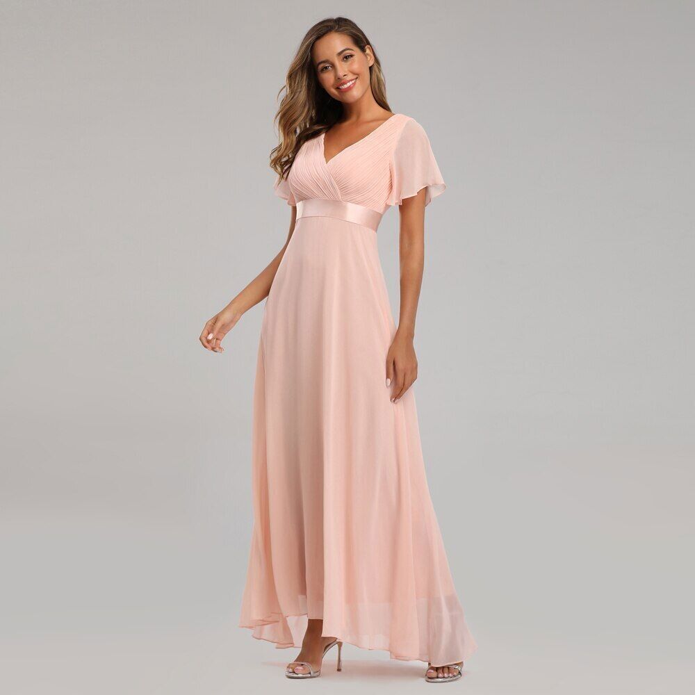 New Summer Elegant V-neck Ruffled Chiffon Formal Evening Dress