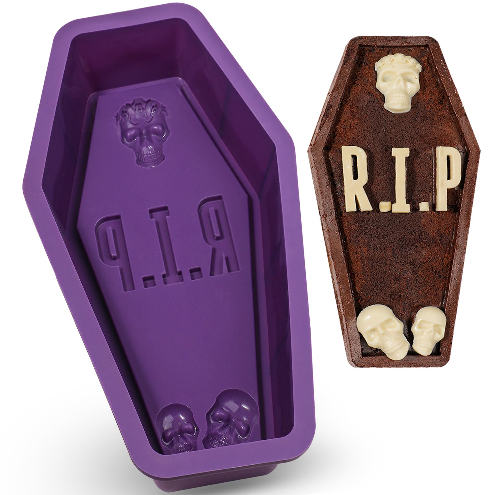 Silicone Coffin Cake Pan, 12 Inch Large Tombstone Shaped Cake Mold for Baking Halloween Themed Party