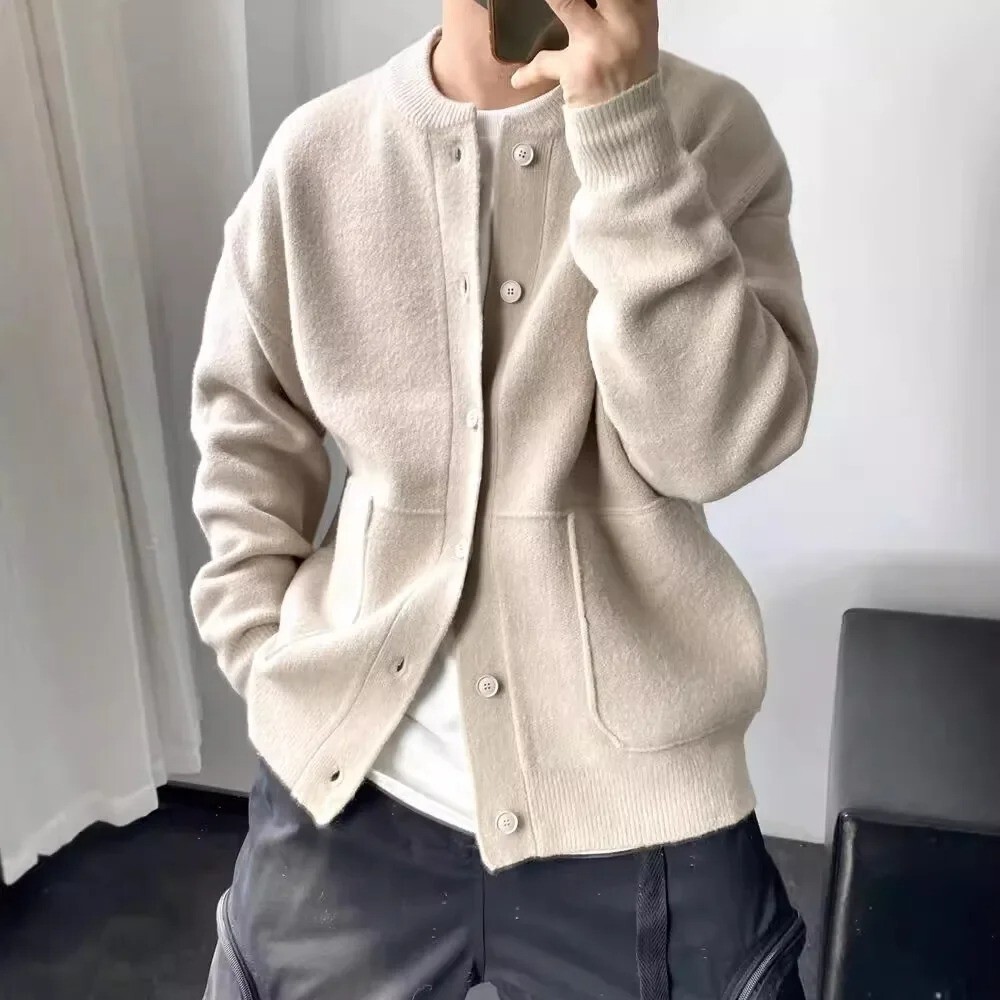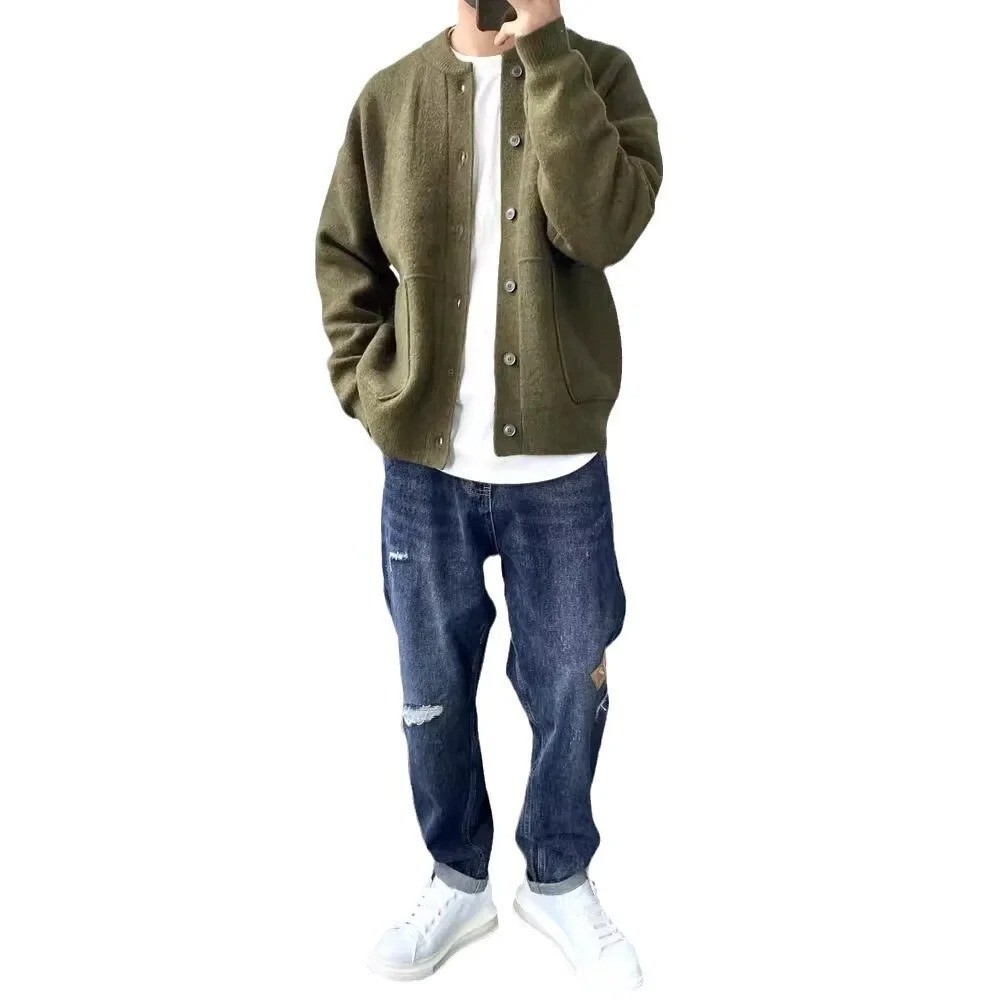 Warm Japanese Style Sweater Coat for Men – Loose-Fit Thick Knit Cardigan