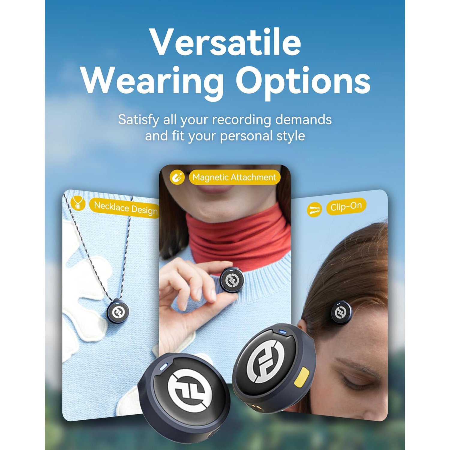 Wearing LARK M2 is super easy! You can attach it with a magnet, clip it on, or try the cool new necklace.