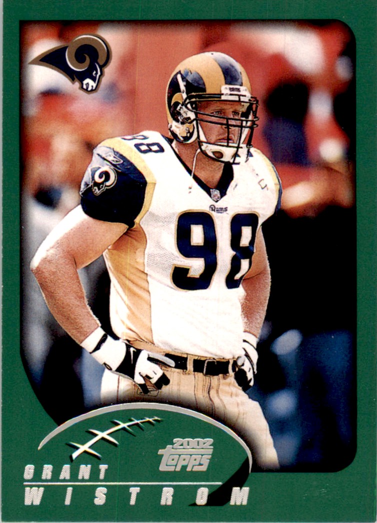 | Description: | Grant Wistrom | | Category: | Football | | Year: | 2002 | | Product: | Topps | | Team: | Football Cards | | Card Number: | 120 | | Dimensions: | 3½" x 2½" |
