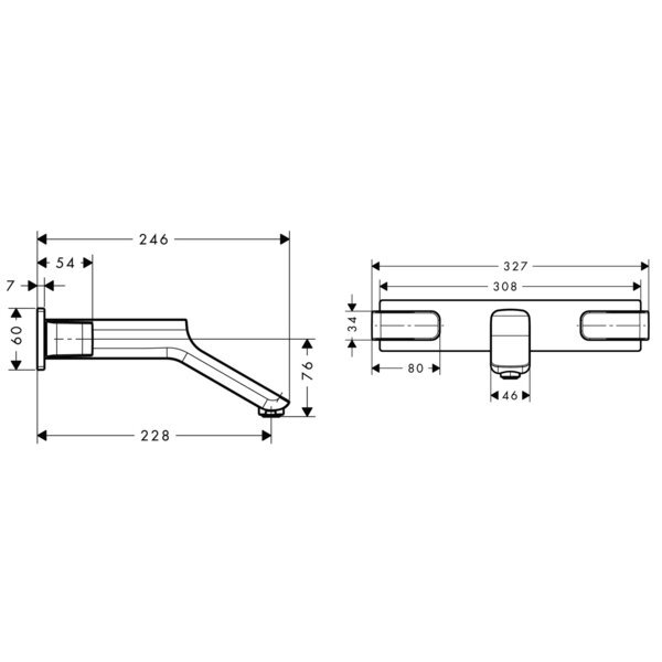 Hansgrohe AXOR Urquiola Mitigeur de lavabo 3 trous modèle encastré avec bec long, 11043820, couleur : nickel brossé