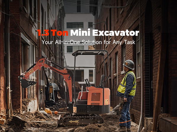 Designed for Narrow Spaces: With an efficient hydraulic pilot system and a 5.9 ft. maximum digging depth, this 1.3-ton mini excavator by AMH provides effortless, precise control for work in narrow lanes, alleys, backyards, gardens, and other tight spaces.
