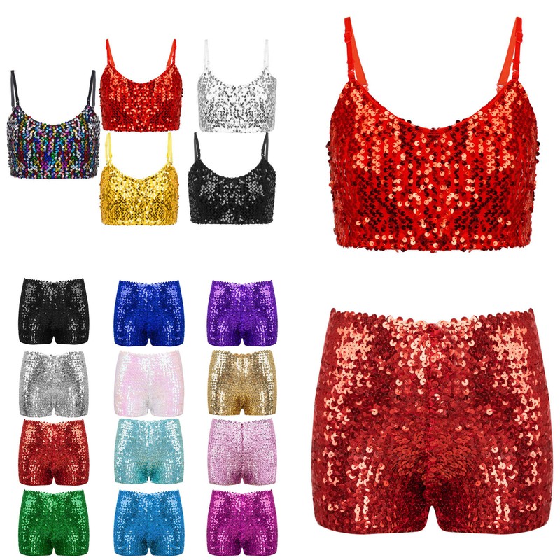 Pair with metallic dance shorts or leggings for unstoppable shine. Perfect for dance competition, stage performance, etc.
