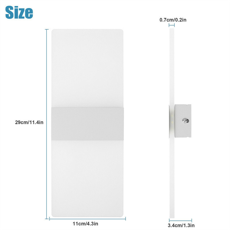 Measures: Size: 29 x 11 x 3.4cm/11.4 x 4.3 x 1.3inch; Temperature: 3000K/6500K; Light color: Warm White/Cool White ; Power: 6W; Voltage: 85-265V.