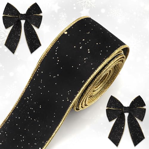 - Size: Christmas Wired ribbon is 10 yards long and 2.5 inches wide, 1 rolls black velvet ribbon, long enough to satisfy your different uses