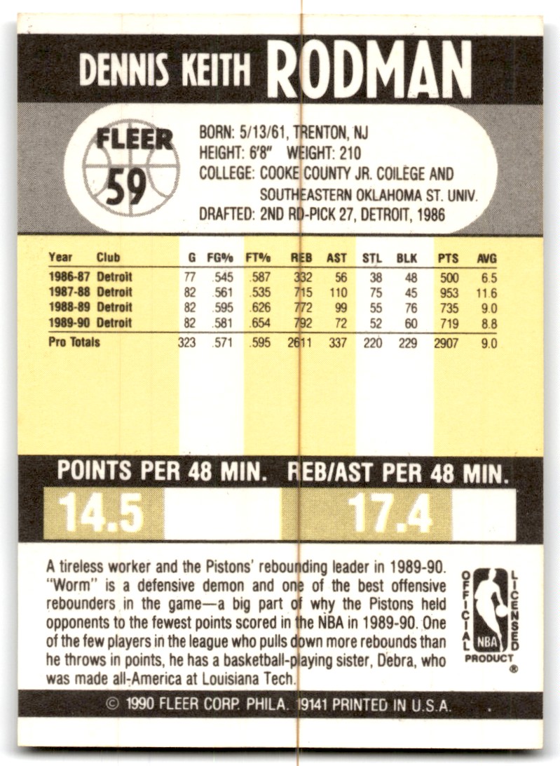 | 1990-91 Fleer Dennis Rodman f Detroit Pistons #59 |
