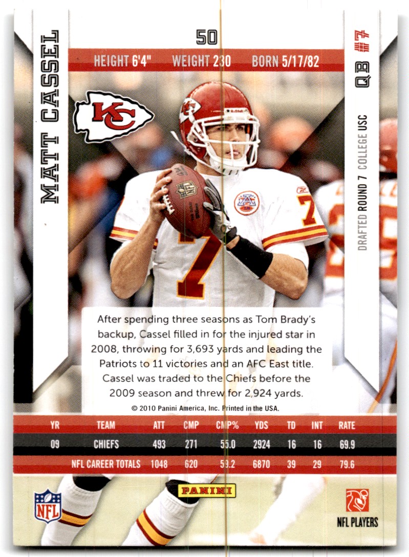 | 2010 Panini Epix Matt Cassel Kansas City Chiefs #50 |
