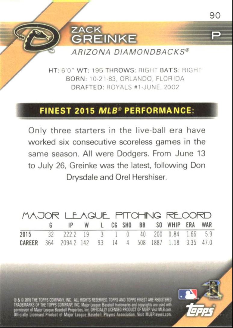 | 2016 Finest Zack Greinke A Arizona Diamondbacks #90 |