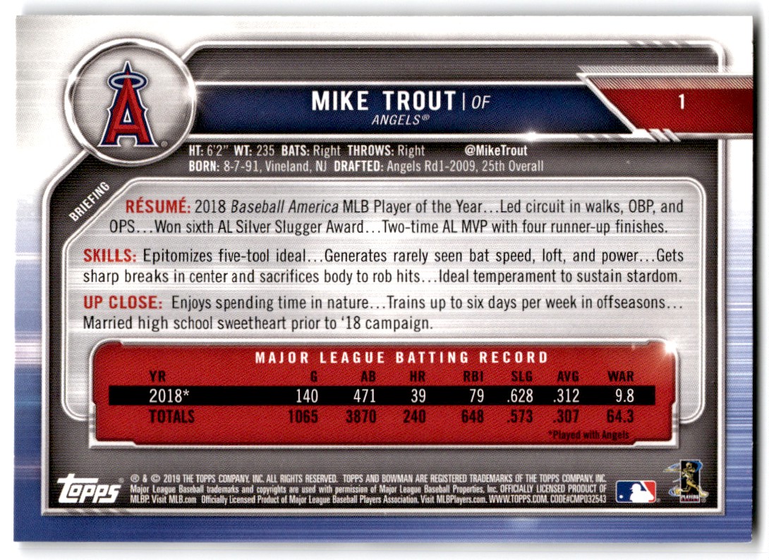 | 2019 Bowman Mike Trout / Los Angeles Angels #6 |